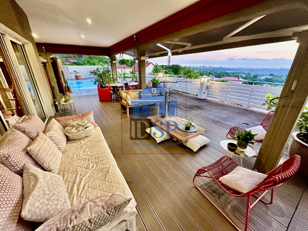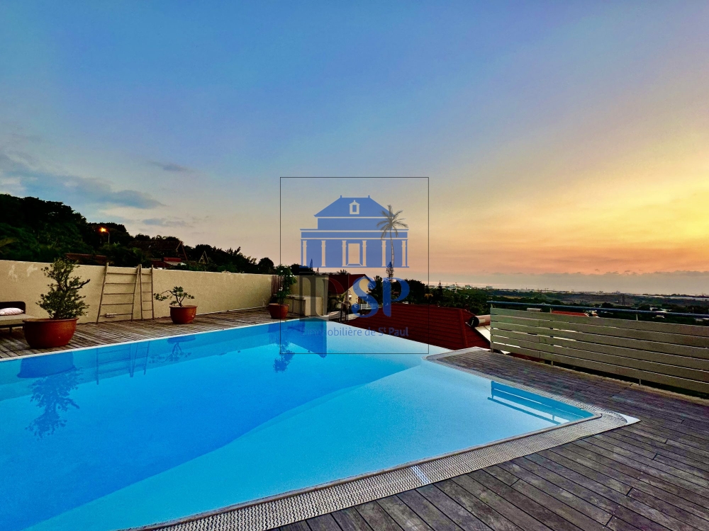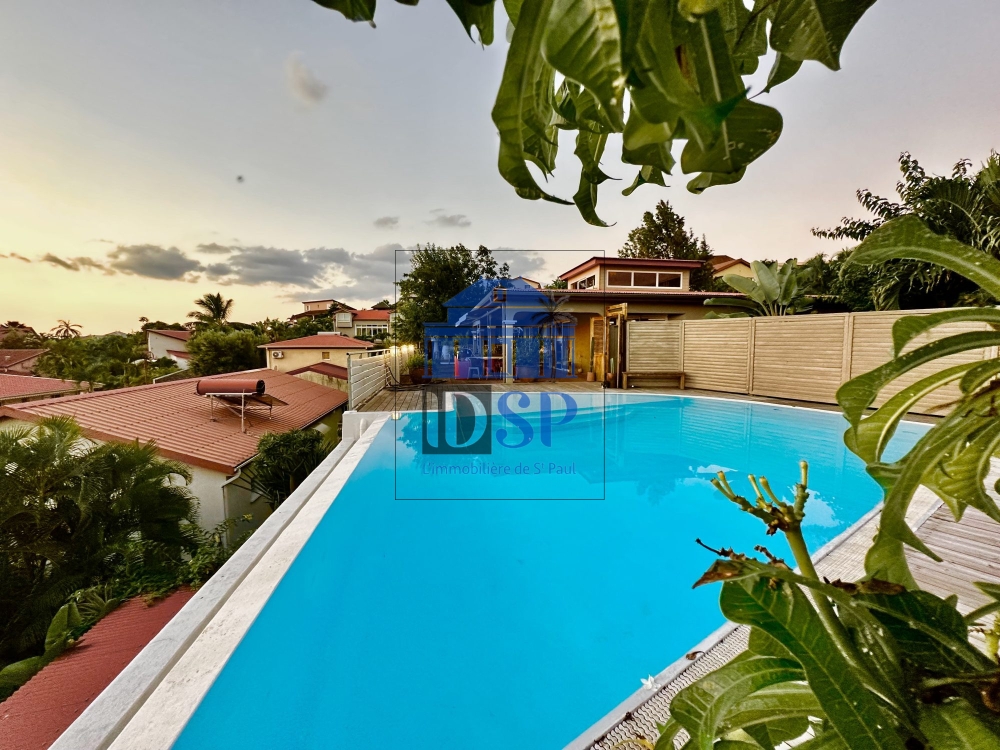 À vendre à La Possession (97419) : maison 10 pièces de 258 m² et de 689 m² de terrain avec piscine et jardin. La maison s'organise comme suit : six chambres, une cuisine aménagée équipée, trois salles d'eau et une salle de bains. Trois places de parking, trois terrasses et une cave complètent le tout. Vue sur mer.