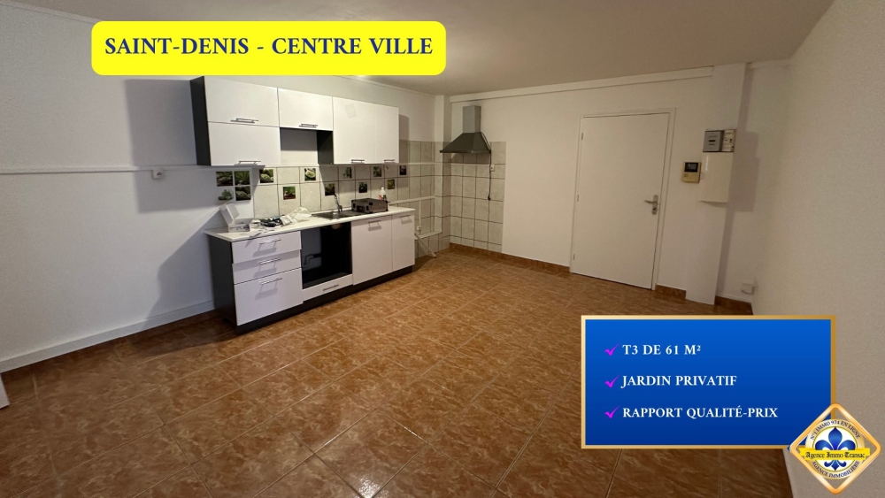 Situé en plein centre de SAINT-DENIS, cet APPARTEMENT offre un EXCELLENT RAPPORT QUALITÉ/PRIX. Vous bénéficierez d'un JARDIN PRIVATIF de 50 m², un LUXE RARE en ville, ainsi que de deux ENTRÉES DISTINCTES pour une FLEXIBILITÉ ACCRUE. Avec ses 61 m² habitables, une TERRASSE OUVERTE de 15 m², et une LUMINOSITÉ NATURELLE grâce aux grandes fenêtres, ce bien combine confort et praticité. Malgré quelques TRAVAUX DE RAFRAÎCHISSEMENT à prévoir, il reste une OPPORTUNITÉ EXCEPTIONNELLE sur le marché immobilier de Saint-Denis, garantissant un INVESTISSEMENT RENTABLE à 190 000 € FAI.