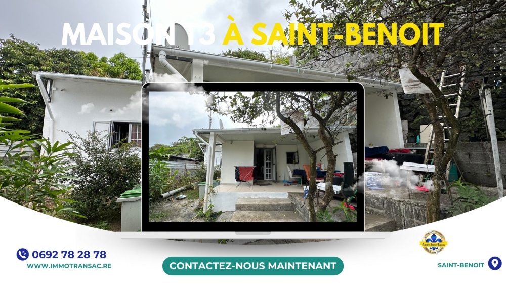 Découvrez cette CHARMANTE villa T3 de 80m² située dans le quartier CALME de Saint-Benoit, proposée par l'Agence Immo Transac.