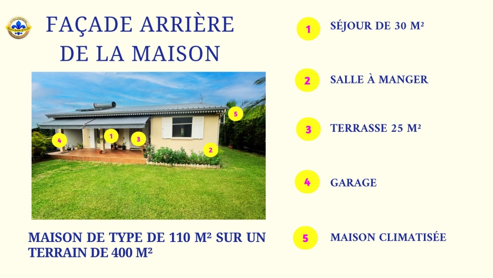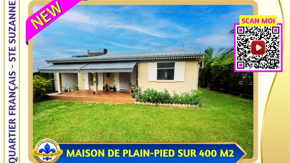 Découvrez pourquoi cette magnifique MAISON de plain-pied lumineuse de 85 m², composée de 4 pièces dont 3 chambres, bâtie sur un terrain de 400 m², située dans le quartier recherché de Quartier Français à Sainte Suzanne pourrait vous plaire :