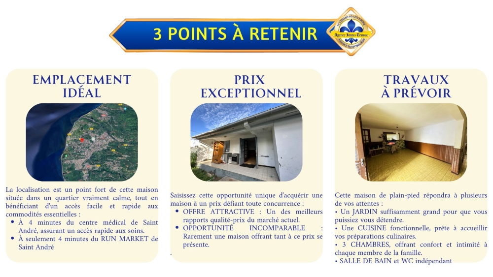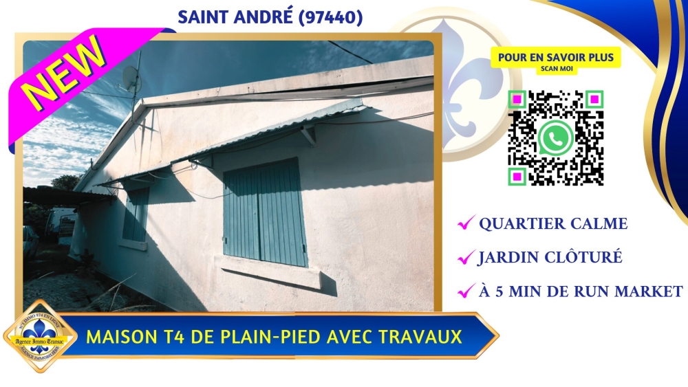 Imaginez-vous trouver une maison à 155 000 € située à seulement 4 minutes du RUN MARKET de Saint André, où pourrez profiter de la proximité des commodités tout en bénéficiant d'un espace de vie paisible et confortable.