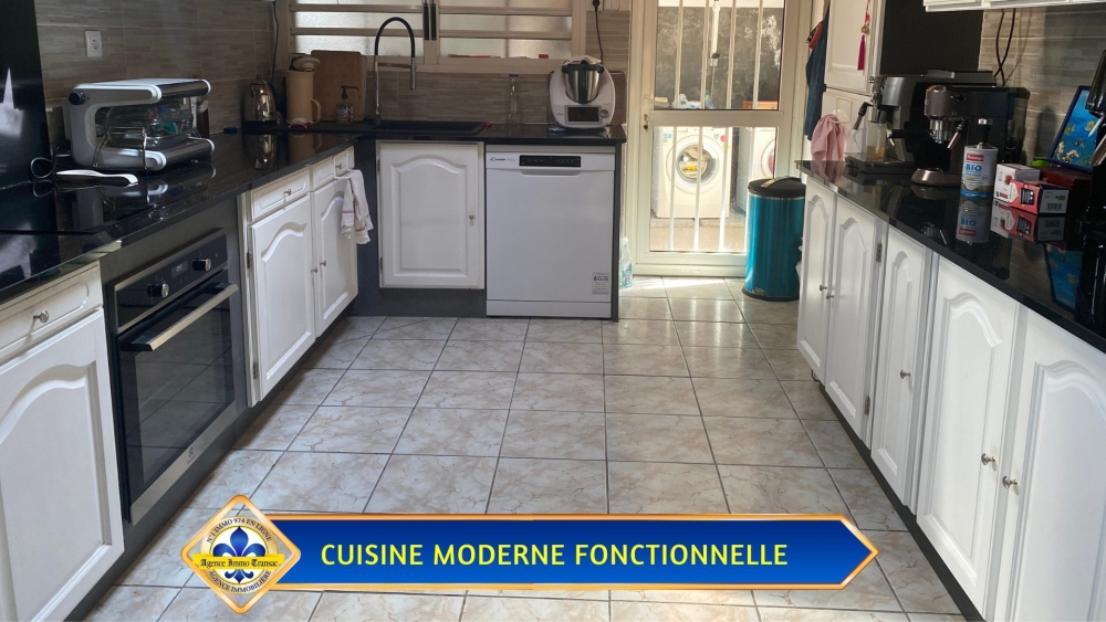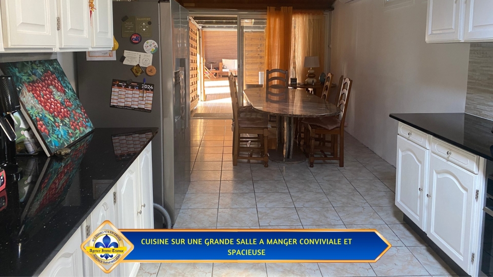 Cette maison allie confort et de la fonctionnalité avec un séjour lumineux, un bureau, 3 chambres, une grande cuisine US et sa salle à manger, une salle d'eau, une varangue spacieuse avec sa cuisine attenante, un abris voiture.