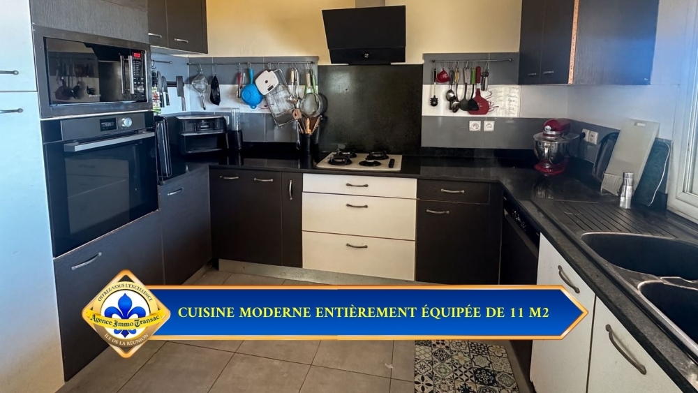 CUISINE MODERNE ENTIÈREMENT ÉQUIPÉE : La cuisine de 11 m² est fonctionnelle, équipée avec goût et parfaitement pensée pour un usage quotidien efficace.