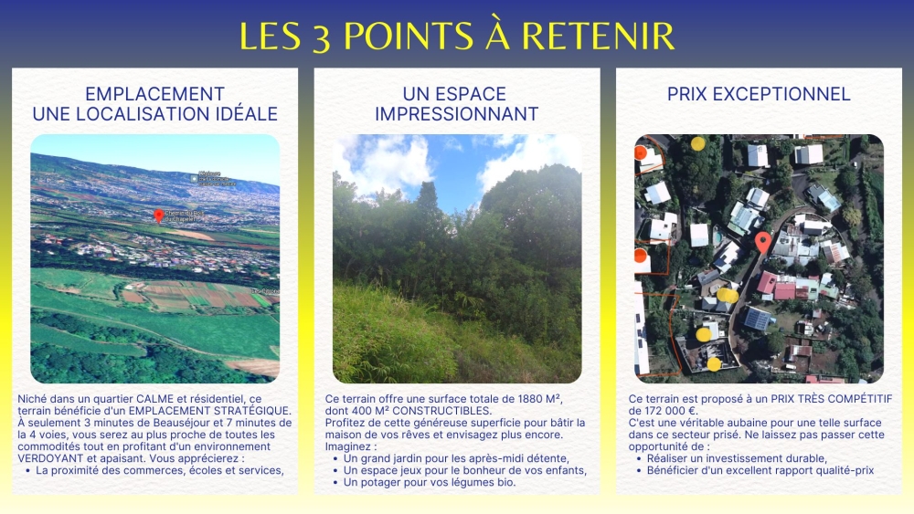 L'Agence Immo Transac 974 vous propose ce terrain unique de 1880 M² à proximité de Beauséjour, idéalement niché dans un quartier CALME et résidentiel.