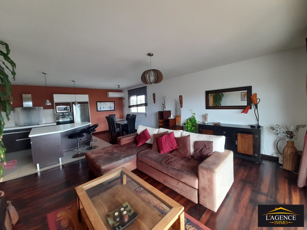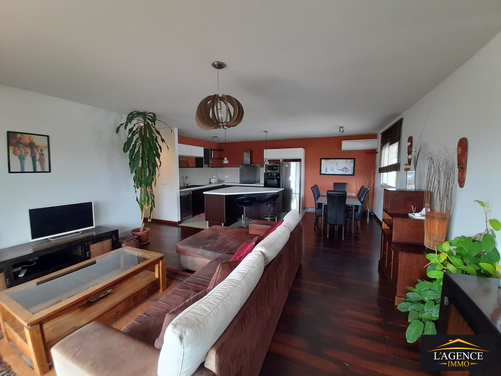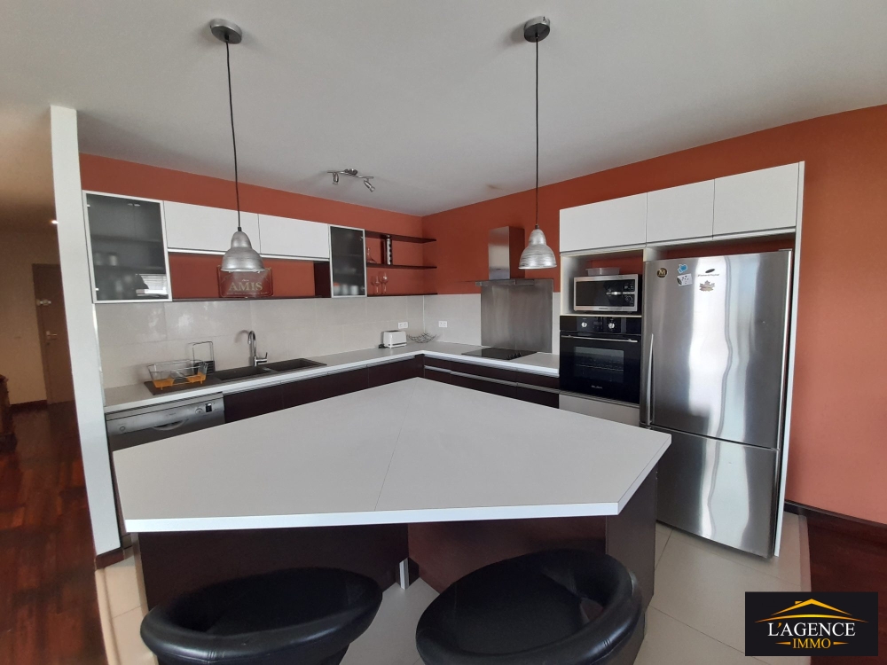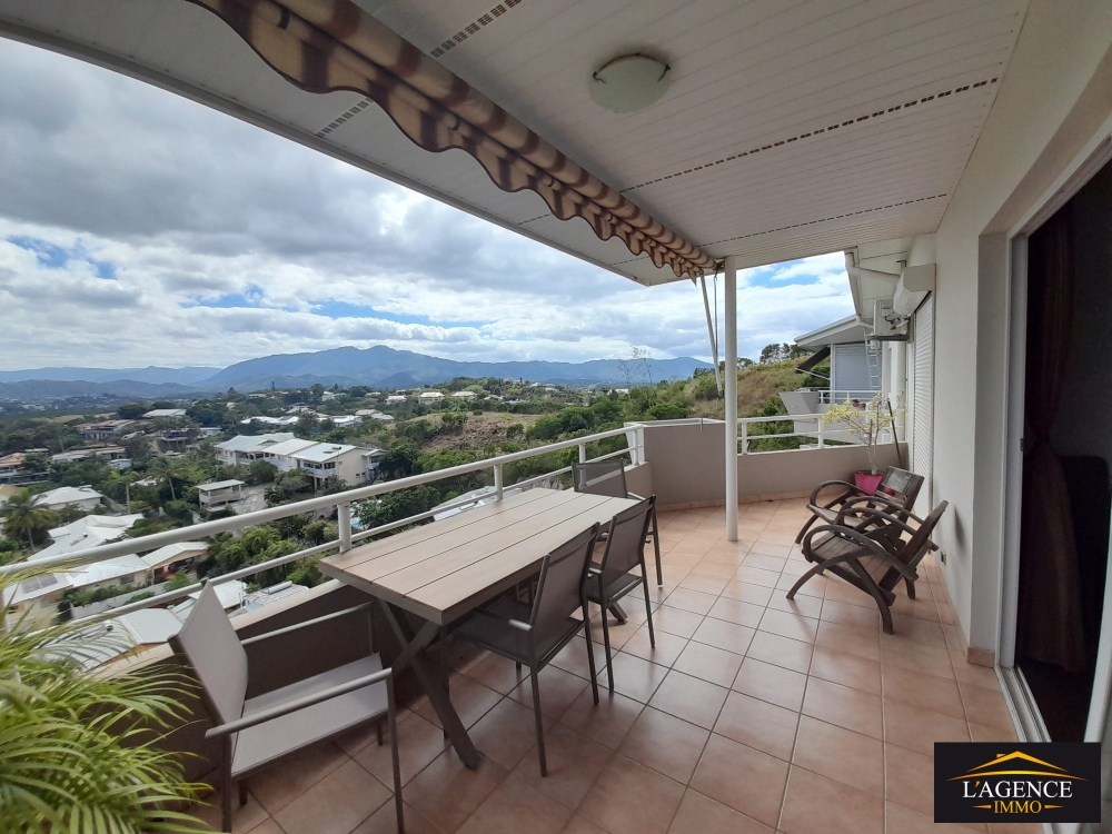 Au quatrième et dernier étage d'une résidence sécurisée, appartement F3 d'une superficie de 85m² comprenant une buanderie, une salle d'eau, un WC indépendant, deux chambres climatisées avec placards, une cuisine équipée et aménagée ouverte sur un grand séjour et une grande terrasse couverte avec une belle vue dégagée.