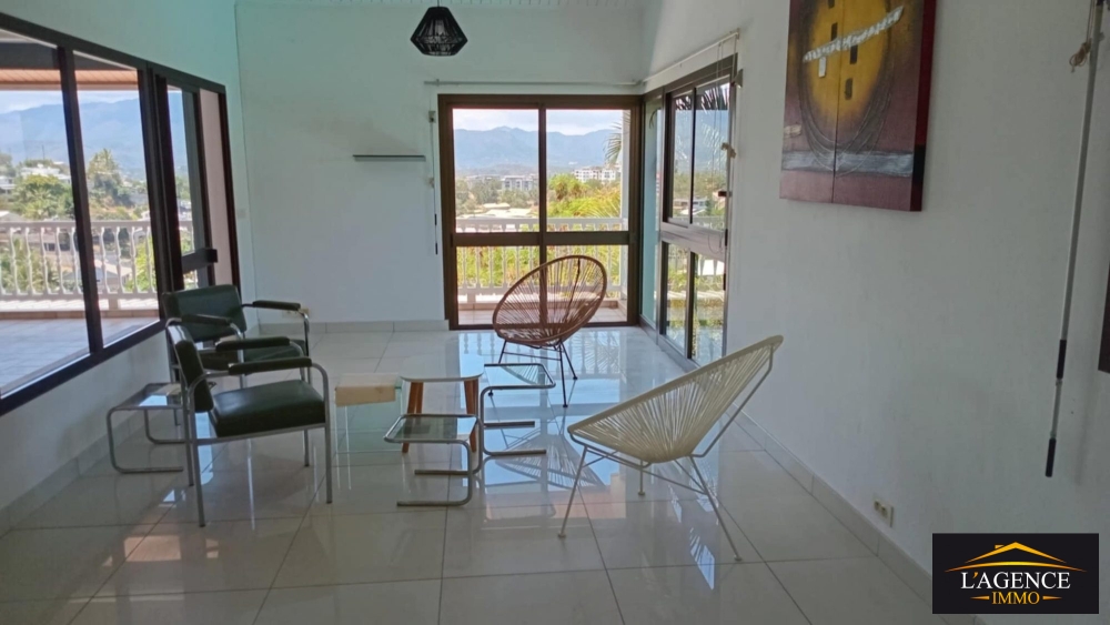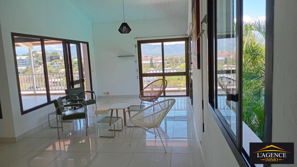 Situé dans une rue calme et résidentielle, venez découvrir ce charmant haut de villa composée d'une cuisine équipée et aménagée donnant sur un vaste et lumineux séjour/salle à manger, d'une salle d'eau, d'un WC indépendant, d'un espace bureau, d'une chambre climatisée avec placard et salle d'eau, une seconde chambre climatisée avec placards donnant sur son petit balcon privatif, une grande terrasse couverte et sécurisée d'une superficie d'environ 28m² offrant une vue imprenable et un petit coin jardin arboré sur l'avant du bien.