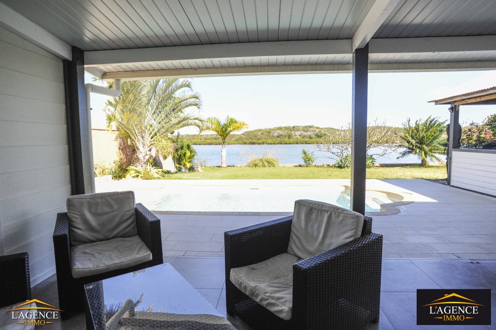 PRODUIT RARE A LA VENTE. Accueillante villa de type F5 ouverte sur la mer, elle offre 3 chambres dont une suite parentale avec dressing et salle d'eau/WC, une seconde salle d'eau, un second WC indépendant, une terrasse couverte de 25 m², un faré, une piscine au sel avec spa intégré, un cellier, une buanderie extérieure, et un car port pour deux véhicules. La villa dispose également d'un accès direct à la mer, et d'un ponton