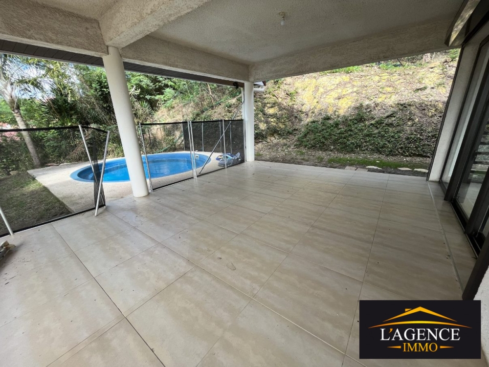 Deux grandes terrasses avec coin piscine et garage pouvant stationner deux véhicules.