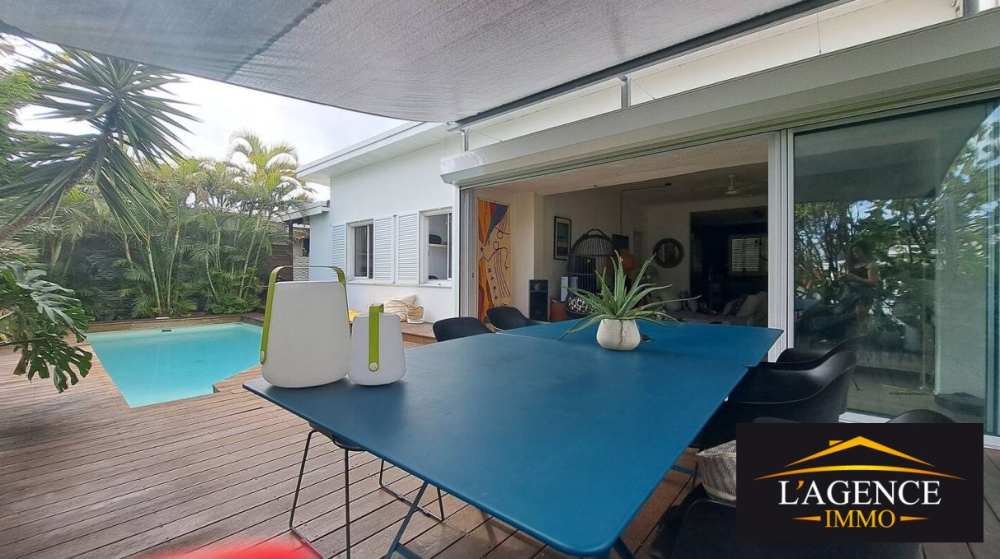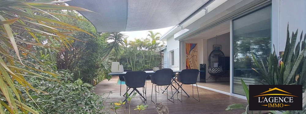 À louer – Villa en impasse F5 avec bureau et studio indépendant. Située dans un quartier calme, cette villa spacieuse se compose d'une entrée sur une cuisine équipée et aménagée, ainsi qu'un séjour lumineux donnant sur un deck en bois de 60 m² bordant une piscine. Elle comprend 3 chambres, une salle d'eau, un WC indépendant, une suite parentale avec salle d'eau et WC, un espace buanderie, un espace de rangement, ainsi qu'un bureau. Un studio semi-indépendant avec chambre, kitchenette, salle d'eau et WC complète l'ensemble, idéal pour sous-location (revenu potentiel de 70 000 à 110 000 Fcfp/mois) ou pour accueillir un adolescent ou de la famille de passage .
