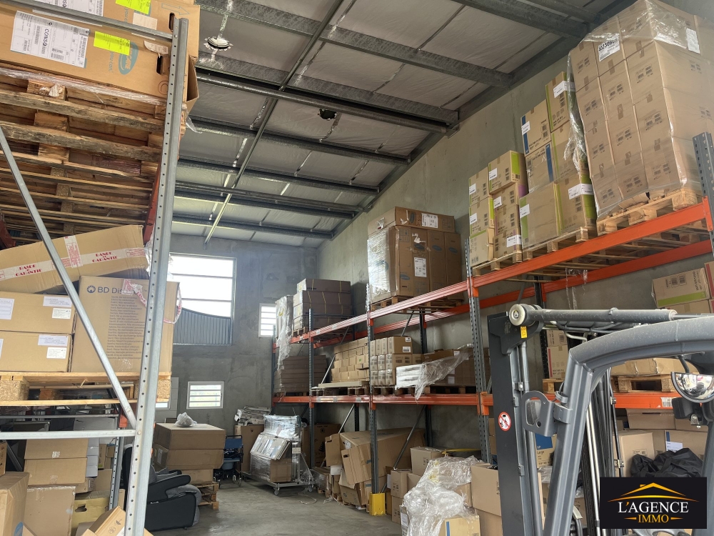 Ce DOCK brut de béton de 83,30m2 est composé d'une zone de stockage et un atelier ainsi que d'un coin WC et un espace douche.
