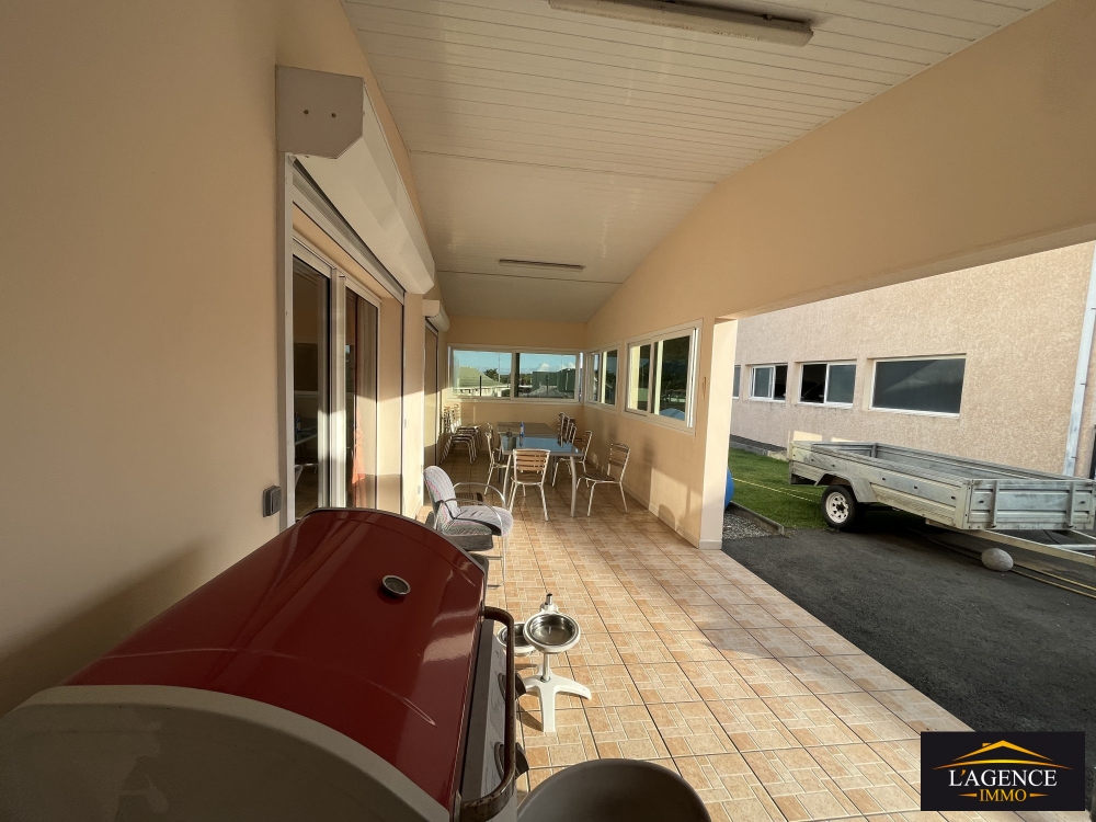 Un premier dock composé d'un garage de 112 m²,offrant une belle hauteur sous plafonds avec mezzanine en béton d'environ 90 m² offrant un potentiel pour des bureaux ou des ateliers avec une hauteur sous plafonds généreuse. un logement de type F4 de plain-pied d'environ 113 m², comprenant trois chambres climatisées avec volets roulants, un dressing, une salle d'eau avec WC, un WC séparé, une cuisine équipée et séparée, ainsi qu'un séjour lumineux ouvrant sur une grande terrasse couverte. ce logement est modulable en habitation et/ou dock et bureaux.