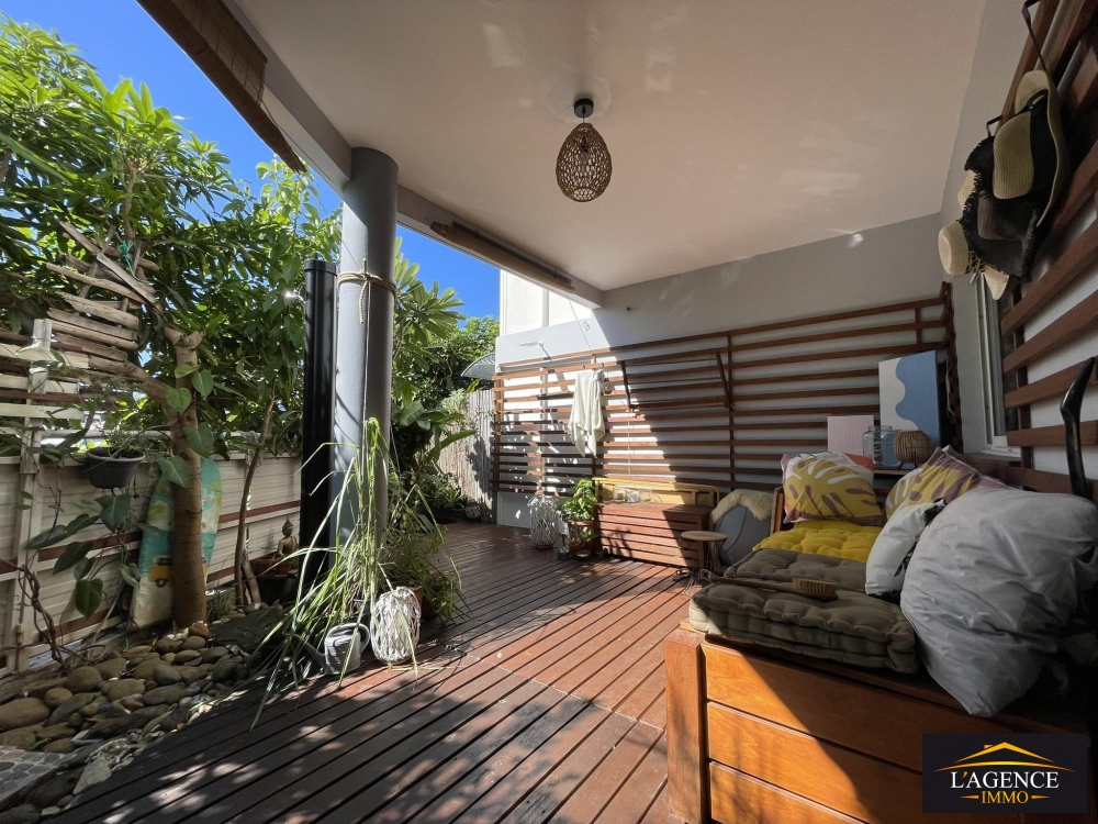 Venez découvrir, cette appartement F3+bureau d'une superficie d'environ 80m² comprenant une cuisine équipée et aménagée, un séjour donnant sur une terrasse couverte et jardinet d'environ 15m², une salle de bain, un WC indépendant, deux chambres avec placards dont une climatisée et bureau pouvant faire office de chambre.