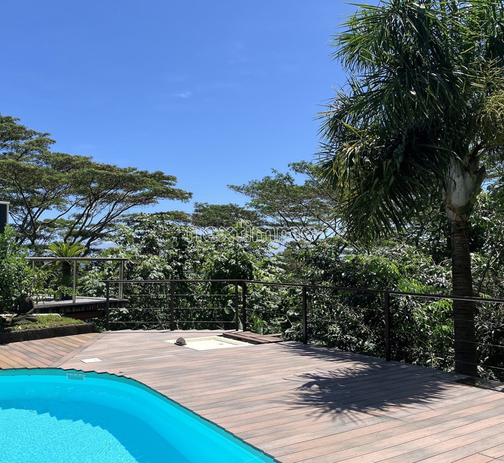 MAHINA / RESIDENTIEL... VENDS JOLIE MAISON 160 M2 en 2 NIVEAUX SUR MOYENNE HAUTEUR, TBE, TERRAIN PLAT et PENTE 1500 m2, PISCINE, VUE FORET & BEL APERCU MER…