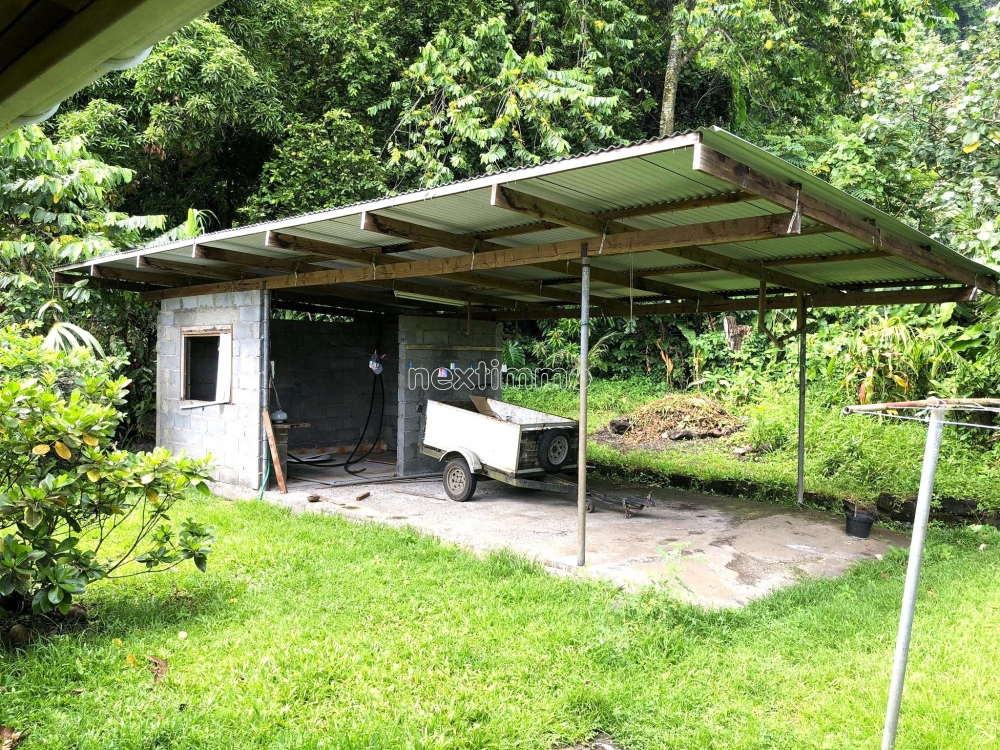 Début Tautira, implantée sur 4600 m² de terrain, facilement accessible et située dans un endroit calme sans nuisances, grande maison en dur