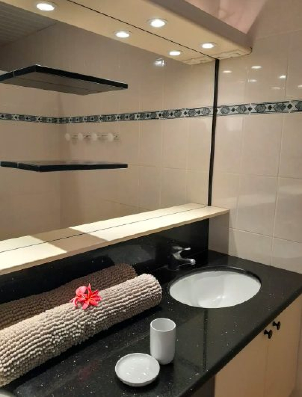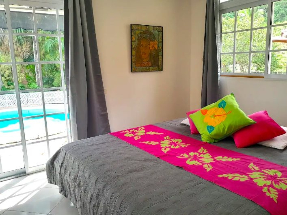 Belle distribution homogène des piéces : Séjour ouvert sur belle terrasse couverte et la piscine. Cuisine équipée US, 4 chambres et 4 salle d 'eau , Beau jardin agrémenté d'un 'Faré poté BBQ ' en pierre traditionnelle. Grand carport 3 voitures et bel espace privatif de 4 autres voitures , portail électrique & système de vidéo surveillance, environnement tés calme.
