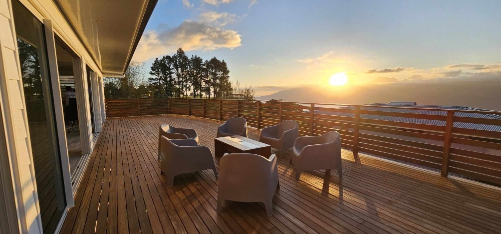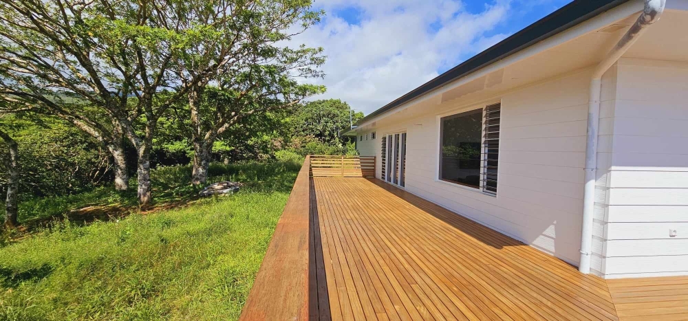 La villa s'ouvre sur une terrasse de 170m², offrant une vue imprenable sur le centre de Taravao, vous pourrez profiter d'un jardin de 3500 m².