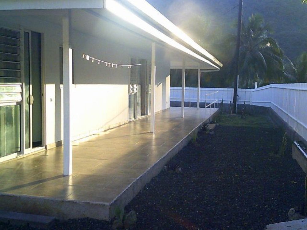 NOUVEAUTE ! MOOREA- PAOPOA : A louer de plein pied, Villa T4 tous confort de 2023 , Salon , cuisine , grande terrasse, jardin clôturé , portail , 2 parkings, 185 000 XPF / mois.
