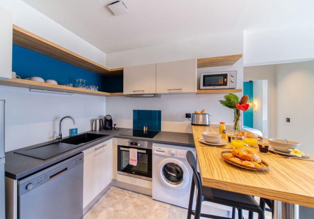 La cuisine entièrement équipée (réfrigérateur, micro-ondes, bouilloire, grille-pain, four multifonctions, cafetière, plaque de cuisson, vaisselle, ustensiles de cuisine, lave-linge et lave-vaisselle) pourra vous permettre de cuisiner à votre guise, et si vous manquez d'inspiration, consultez votre 'concierge digital' pour découvrir les restaurants aux alentours.