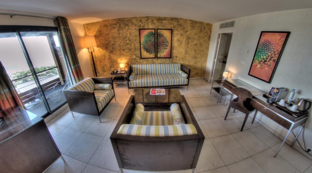 Cette suite pour deux personnes fait partie d'un ensemble hôtelier situé à Saint-Denis sur l'île de la Réunion. Avec son salon détente séparé de la chambre à coucher, sa literie extra large et sa salle de bain spacieuse avec baignoire et douche à l'italienne, vous pourrez profiter d'un séjour magique dans cette suite émeraude double.
