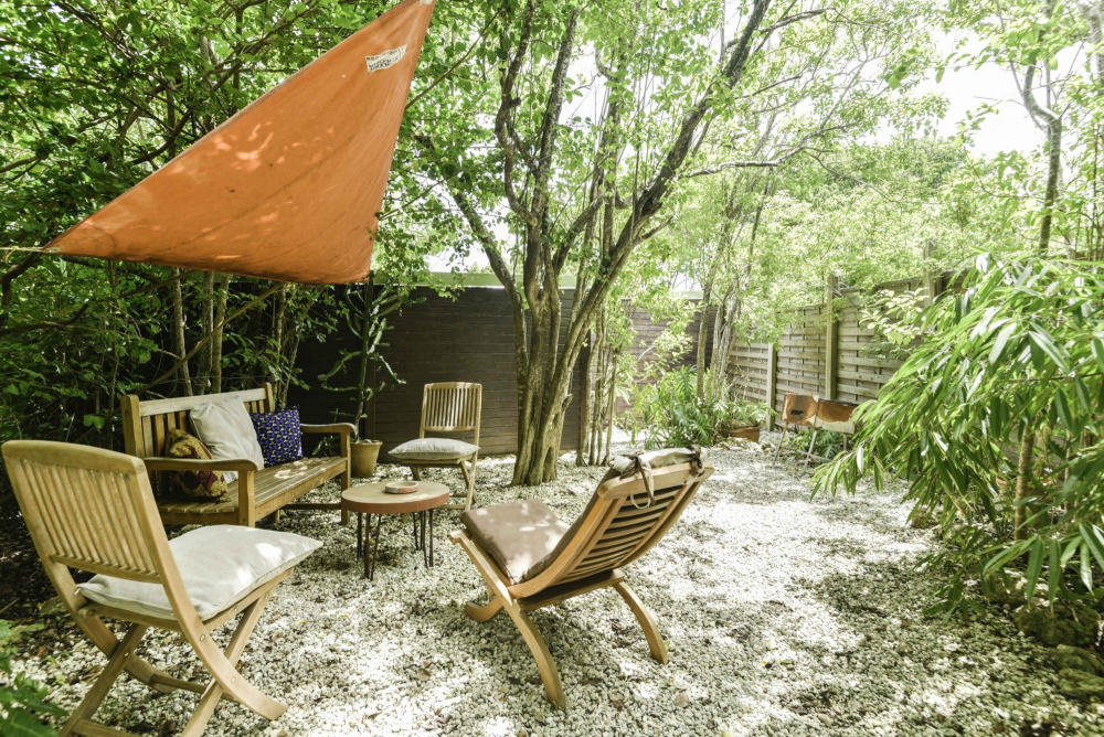 Vous pourrez profiter d'un coin repas coté mer et d'un coin lecture & chill côté bois.