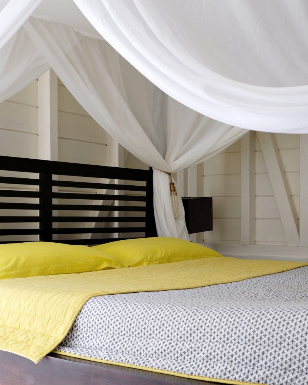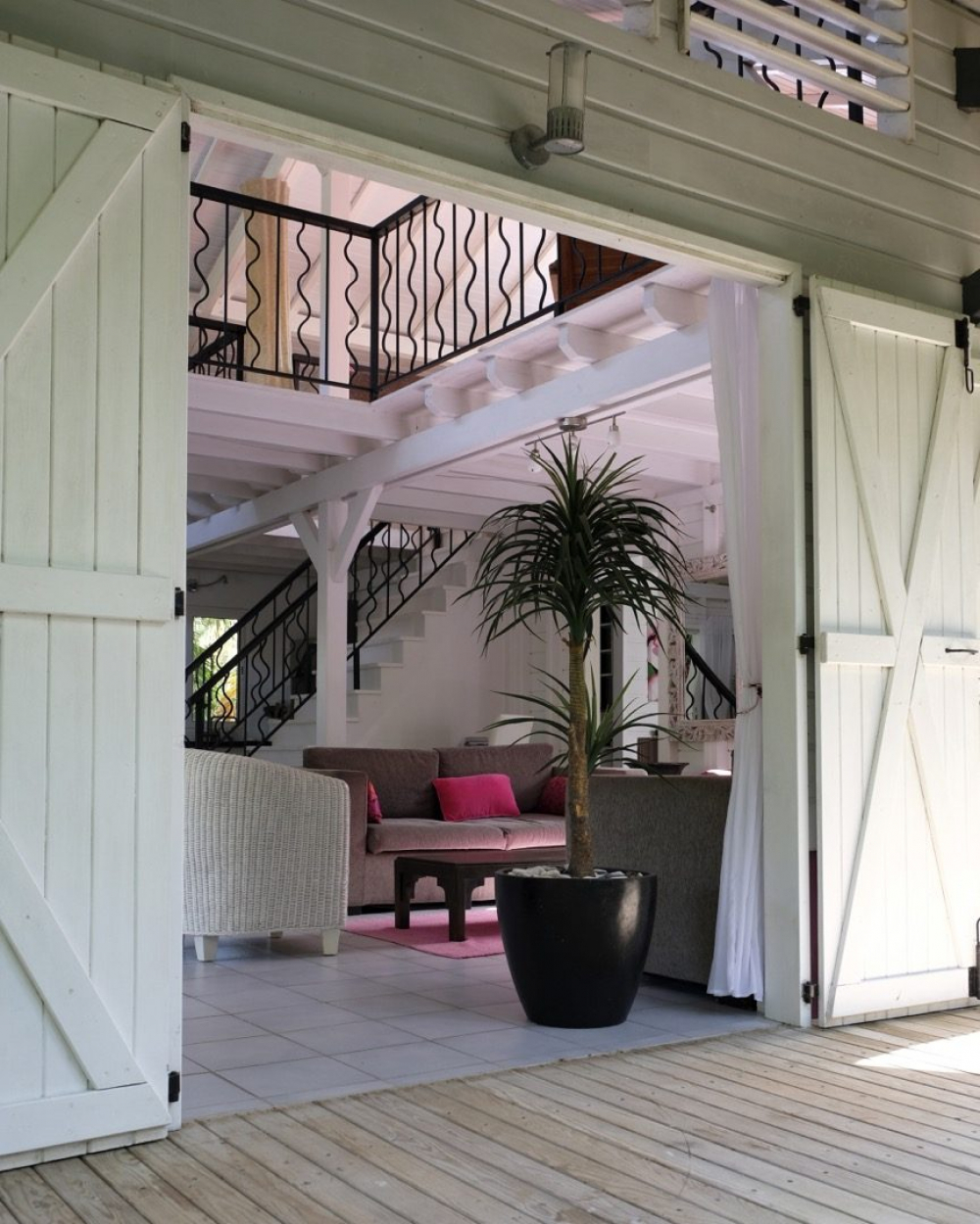 Elle se présente en deux parties, l'une pour la journée très ouverte sur la piscine et le jardin, la seconde pour la nuit, réservée aux chambres climatisées et salles de bain.