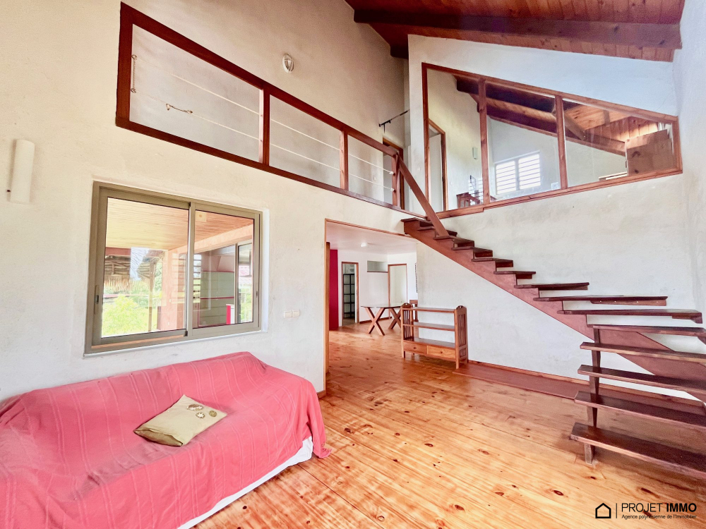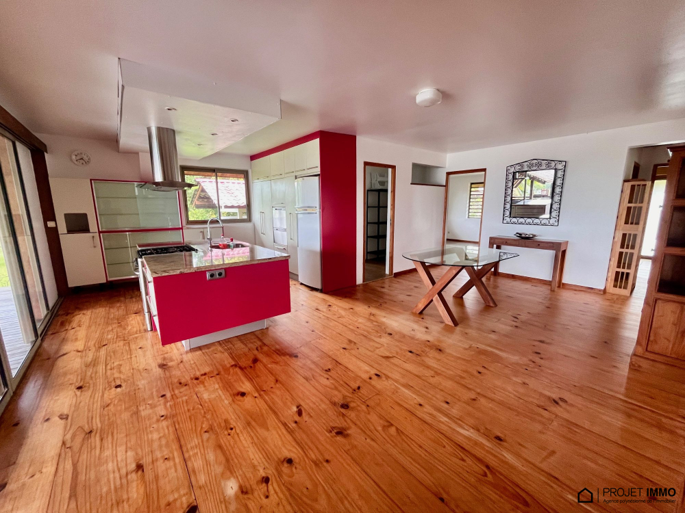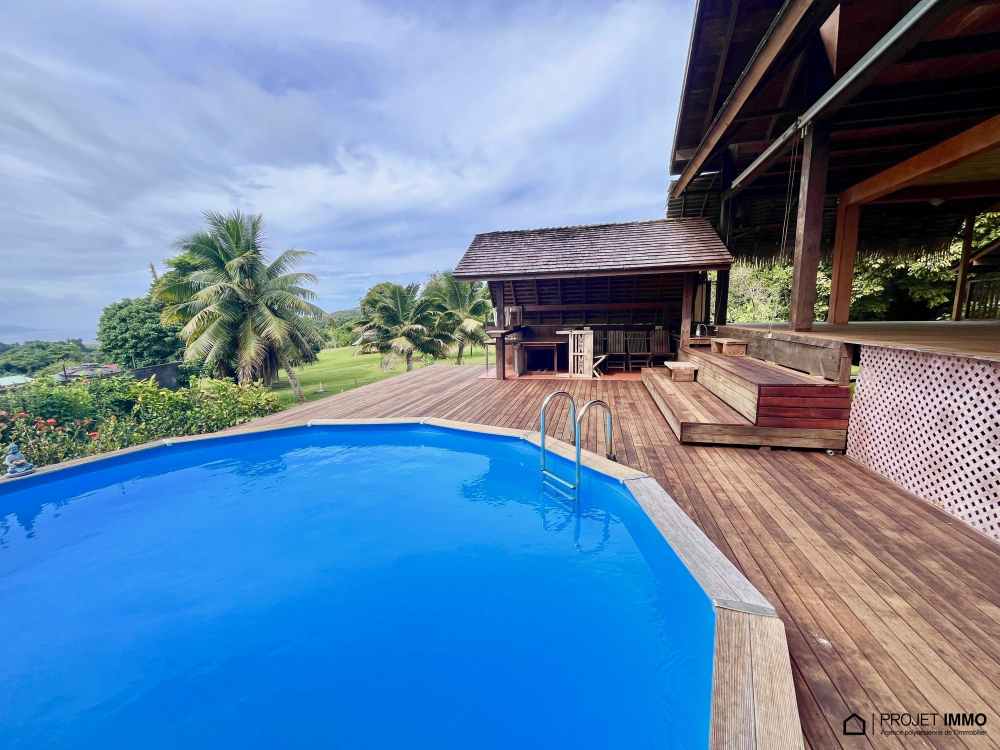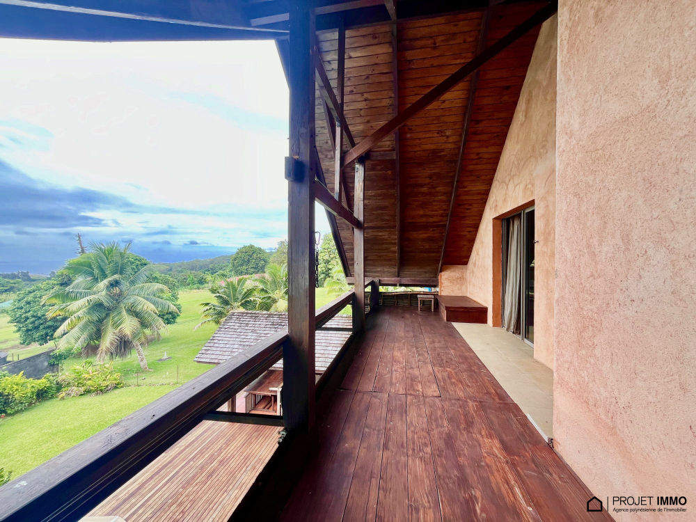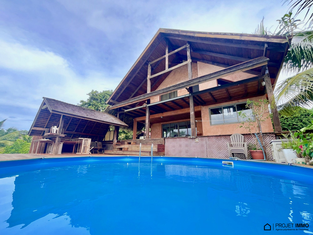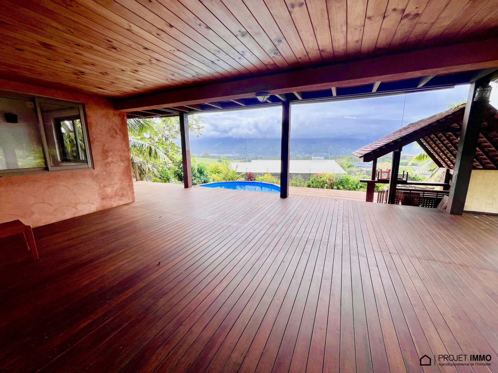 A saisir belle maison en dure située sur les hauteurs de Taravao bénéficiant d'une belle vue mer et sur l'isthme, composée d'une entrée grand salon séjour de 53 m2 avec terrasse couverte et piscine avec Fare poté, cuisine équipée avec îlot, salle à manger, 3 chambres au rez de chaussée, wc, salle d'eau, buanderie, à l'étage une suite parentale de 52m2 avec salle d'eau+wc+dressing et une belle terrasse couverte, un bureau ou chambre
