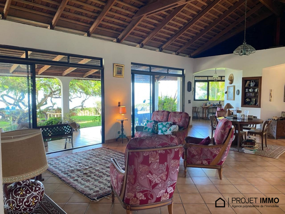 En vente : à Punaauia, nous vous proposons cette maison de 4 pièces de 255 m² et de 1 725 m² de terrain. Elle donne sur la mer et bénéficie d'une exposition sud-ouest. Son intérieur se divise en trois chambres, une cuisine aménagée, trois salles d'eau et quatre toilettes.