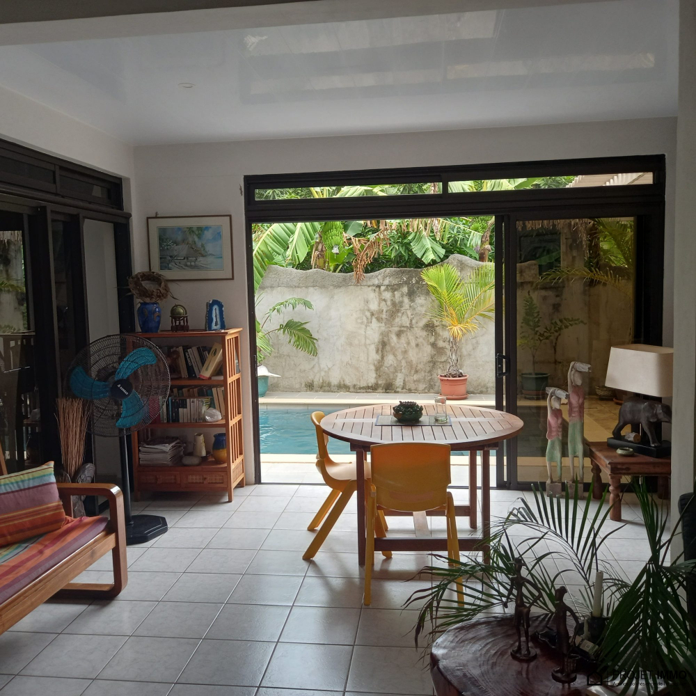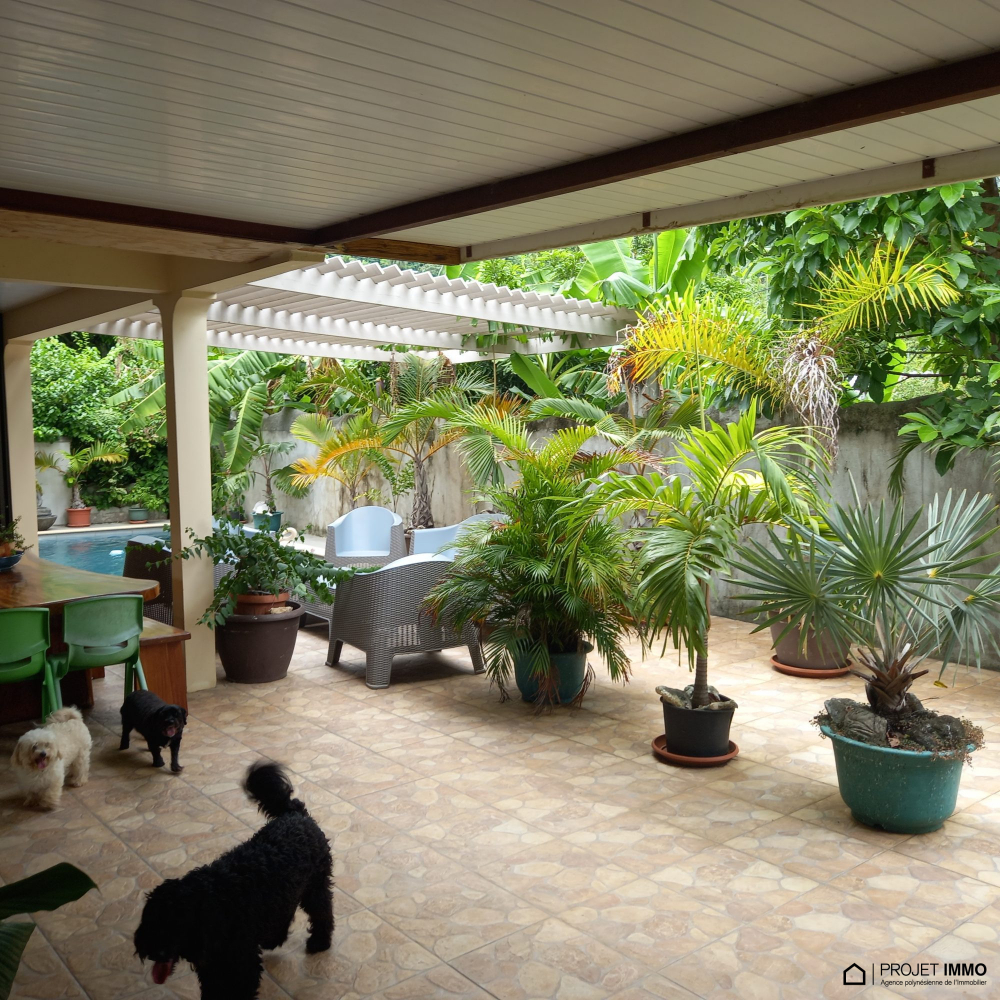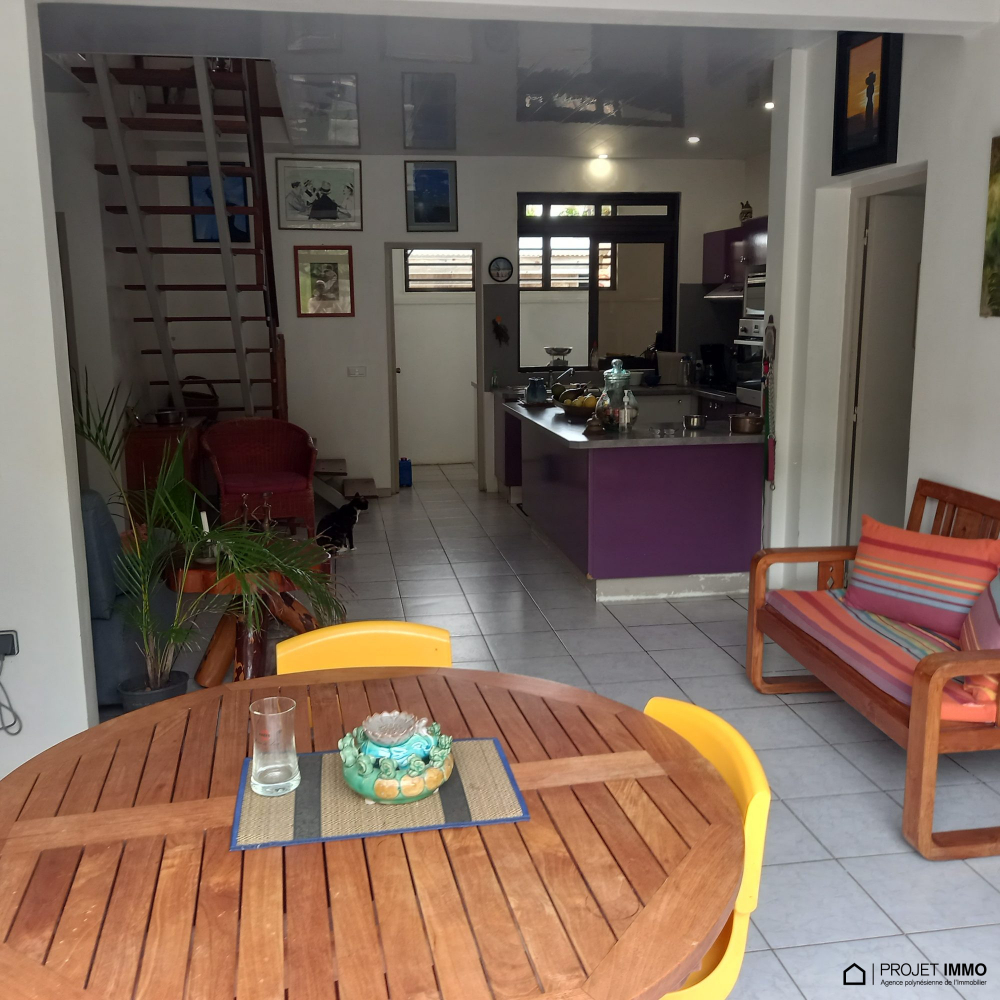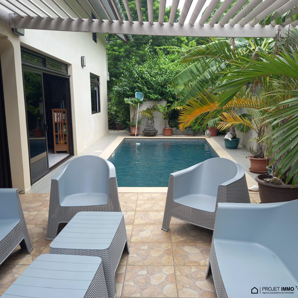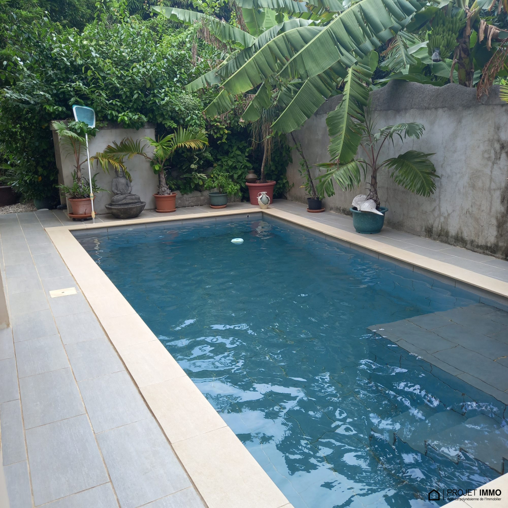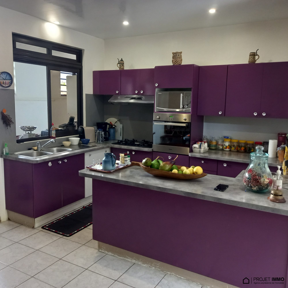 Proche COMMERCS, ECOLES, QUAI DES FERRYS..... - À Maharepa (98728), maison à vendre de 6 pièces, 200 m² et 1 300 m² de terrain avec piscine et jardin. Elle inclut une pièce à vivre, quatre chambres, une cuisine aménagée équipée et trois salles d'eau. 60 terrasses, cinq places de parking et deux balcons complètent le tout. Intérieur en excellent état. Vue sur les montagnes.