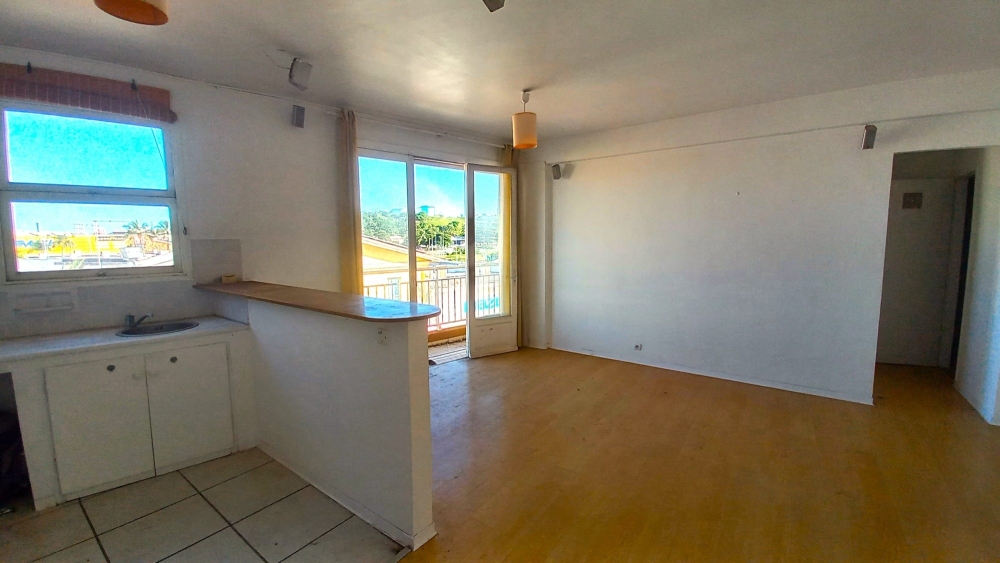 Au 2eme étage de la Résidence PAKILI (au dessus de Saint Vincent de Paul), appartement F2 comprenant : cuisine ouverte sur séjour , chambre climatisée avec placards, salle d'eau neuve, balcon et une place de parking sécurisée.