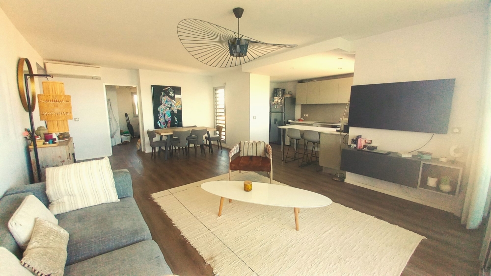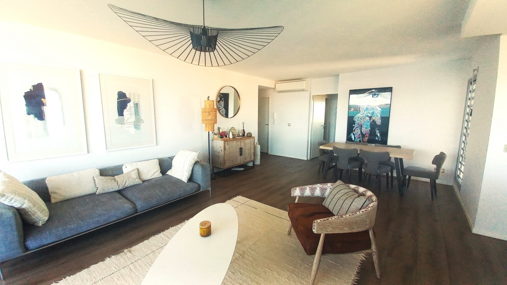 A l'entrée de la ville, dans la Résidence Pacific Plaza, situé au 18-ème étage, Appartement F3 comprenant : cuisine équipée ouvert sur séjour, 2 chambres climatisées avec placards, salle d'eau avec buanderie extérieure, wc indépendant, terrasse couverte, 2 places de parking, cellier.