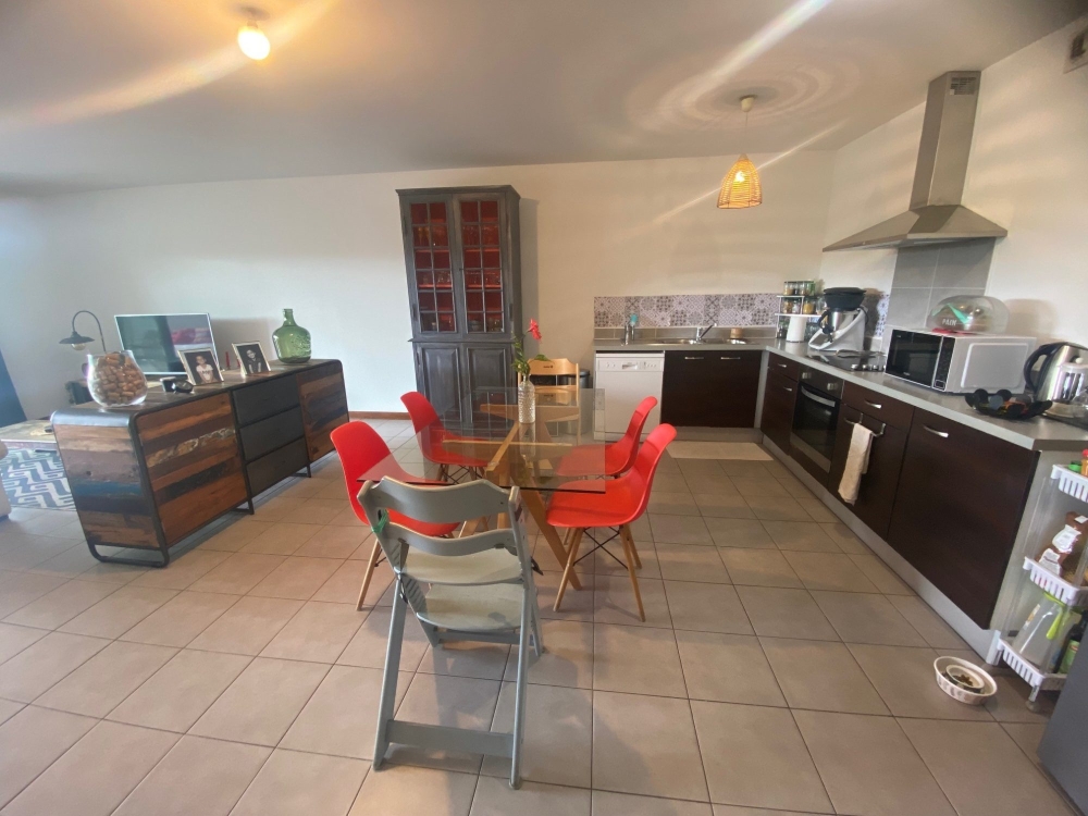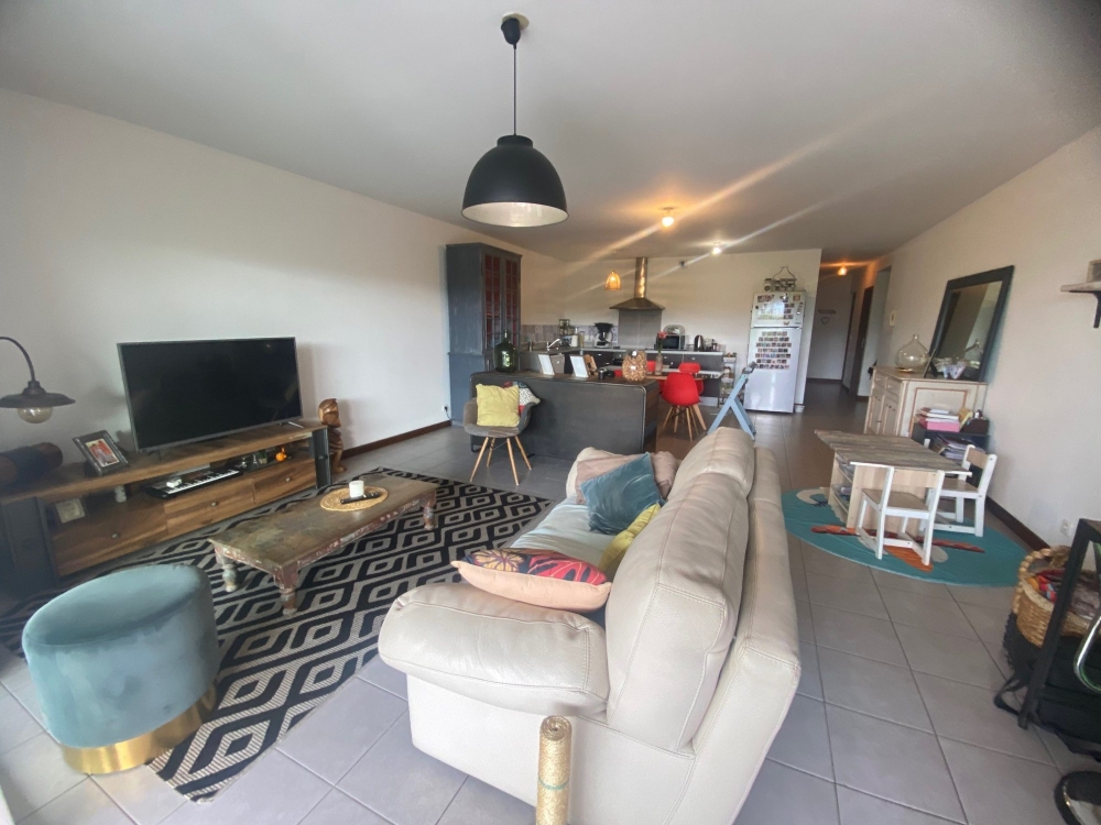 A vendre, très grand appartement F3 d'environ 100m2 + 1 terrasse d'environ 20m2 +jardin, situé dans une résidence récente et sécurisée.