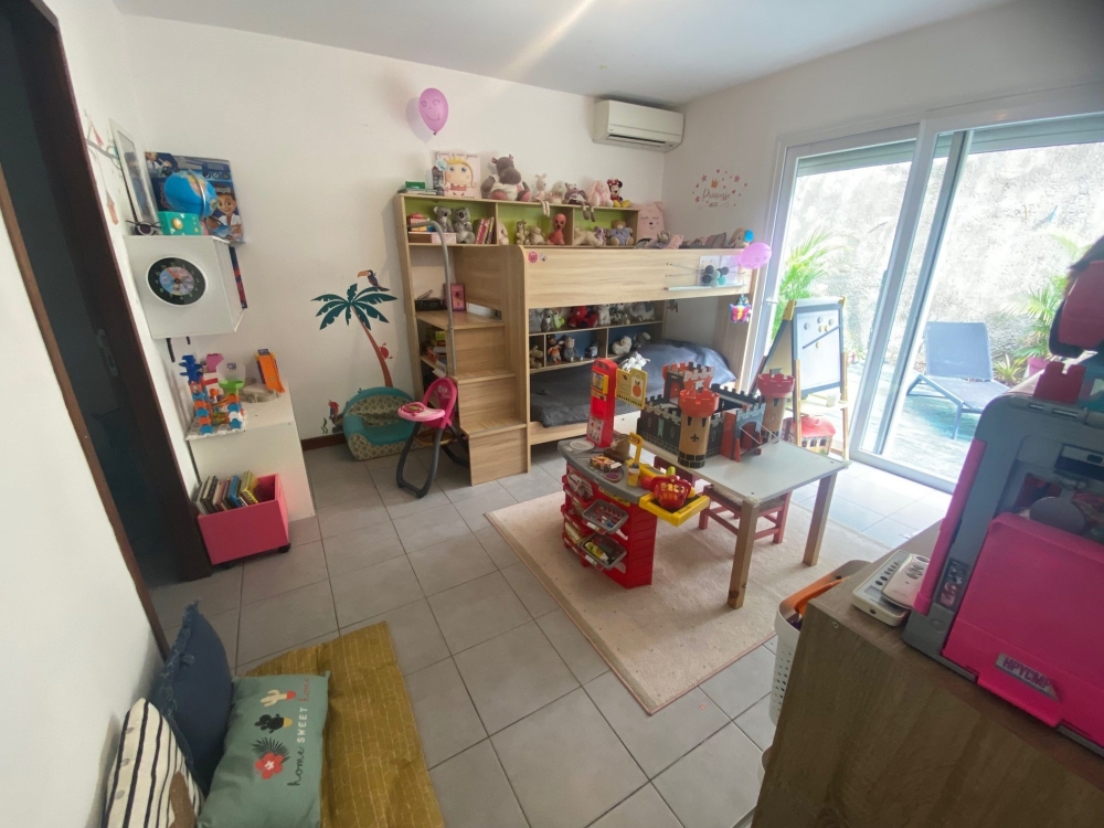 Ce logement traversant, spacieux et fonctionnel, sera idéal pour accueillir une famille avec enfants. Il se compose d'une grande pièce de vie salon/cuisine d'environ 50 m2 ouverte sur une terrasse et un jardinet, d'un coin nuit desservit par un dégagement, comprenant une buanderie, un WC individuel, une salle d'eau avec WC, une chambre avec placard et climatisation de 11.45m2, une seconde grande chambre climatisée de 14.16m2+dressing de 4.43m2+salle de bain avec douche et baignoire de 8.78 m2.
