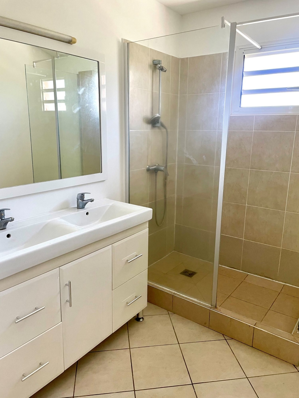 A l'étage, un palier dessert une salle d'eau, un WC indépendant ainsi que trois chambres climatisées avec grands placards. Des volets roulants et persiennes sont installées au niveau de toutes les fenêtres et baies vitrées.