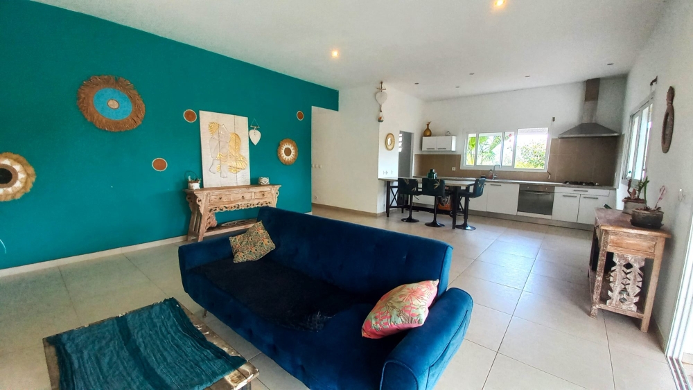 Cuisine aménagée et équipée ouverte sur séjour, 2 chambres avec placards, une suite parentale avec dressing et salle d'eau, buanderie, salle d'eau et WC indépendant.