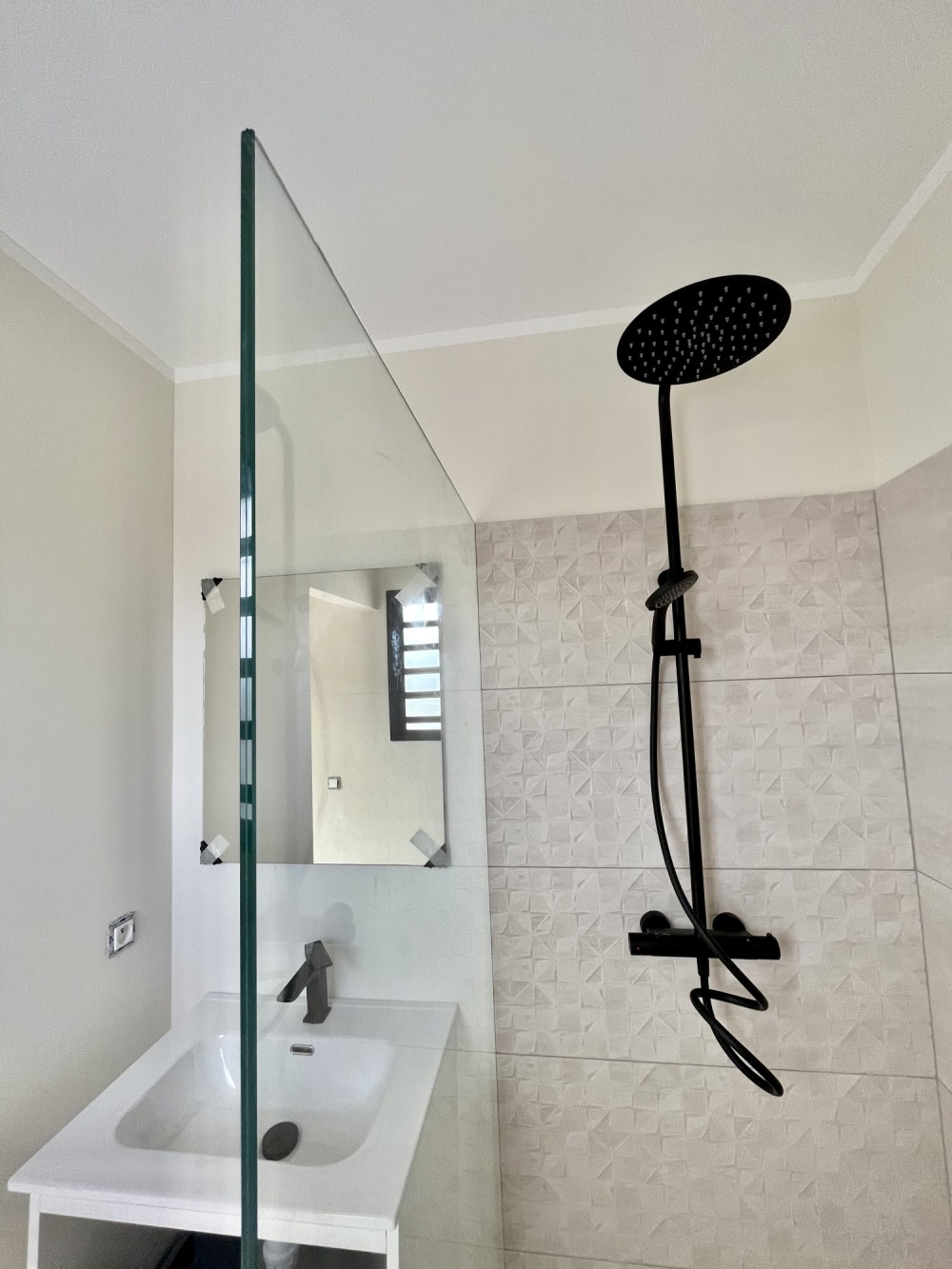 Située à Cap Apogoti, nous vous proposons à la location une villa F4, neuve, en duplex.