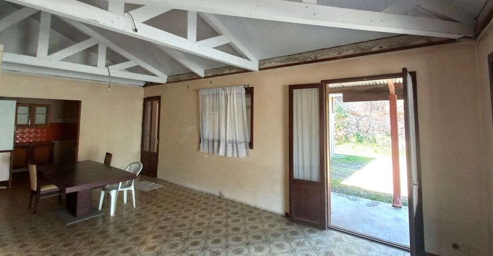 En impasse sur Yahoué, terrain de 8 ares, Villa F4 à rénover comprenant : séjour , cuisine , chambre avec salle de bain, deux chambres, salle d'eau, terrasse et grand garage.