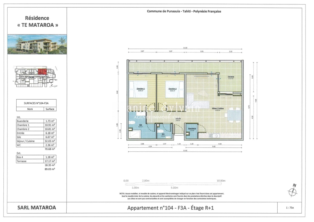 Punaauia, située juste en face de la plage de sable blanc de PK18, la résidence neuve MATAROA est un ensemble immobilier de petite composée seulement de 23 logements allant du F1 au F5, tous équipés de la fibre optique et certains avec cellier. Aire de jeux, parking couvert et en extérieur et portails automatiques.