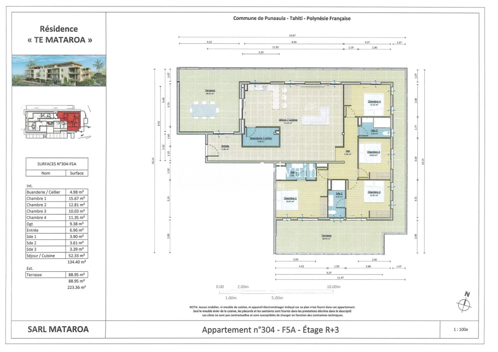 Punaauia, située juste en face de la plage de sable blanc de PK18, la résidence neuve MATAROA est un ensemble immobilier de petite composée seulement de 23 logements allant du F1 au F5, tous équipés de la fibre optique et certains avec cellier. Aire de jeux, parking couvert et en extérieur et portails automatiques.