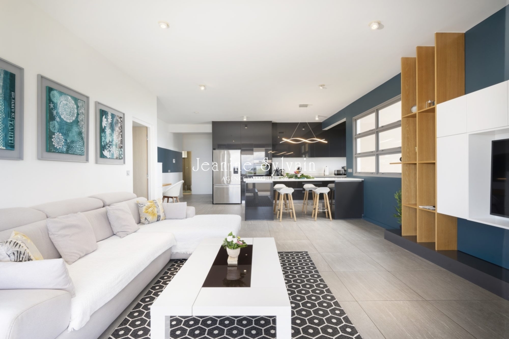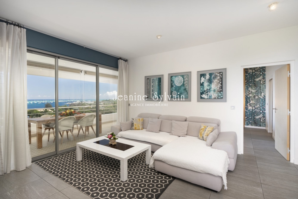 Dans une résidence récente de très bon standing, appartement très bien aménagé avec des matériaux de qualité, menuiserie sur mesure, vue splendide 180° sur le lagon turquoise, la mer et Moorea. Cet appartement d'angle est spacieux avec une belle hauteur sous plafond de 2.80m et bien ventilé naturellement, lui donnant des proportions très agréables à vivre. Il est composé d'une entrée avec espace buanderie, un grand séjour, grande cuisine équipée moderne, ilot central, terrasse couverte, store verticaux, une grande chambre parentale avec dressing et salle d'eau, une deuxième chambre spacieuse, une salle d'eau avec ventilation naturelle. CE solaire, baies vitrée double vitrage. Vendu meublé et équipé.