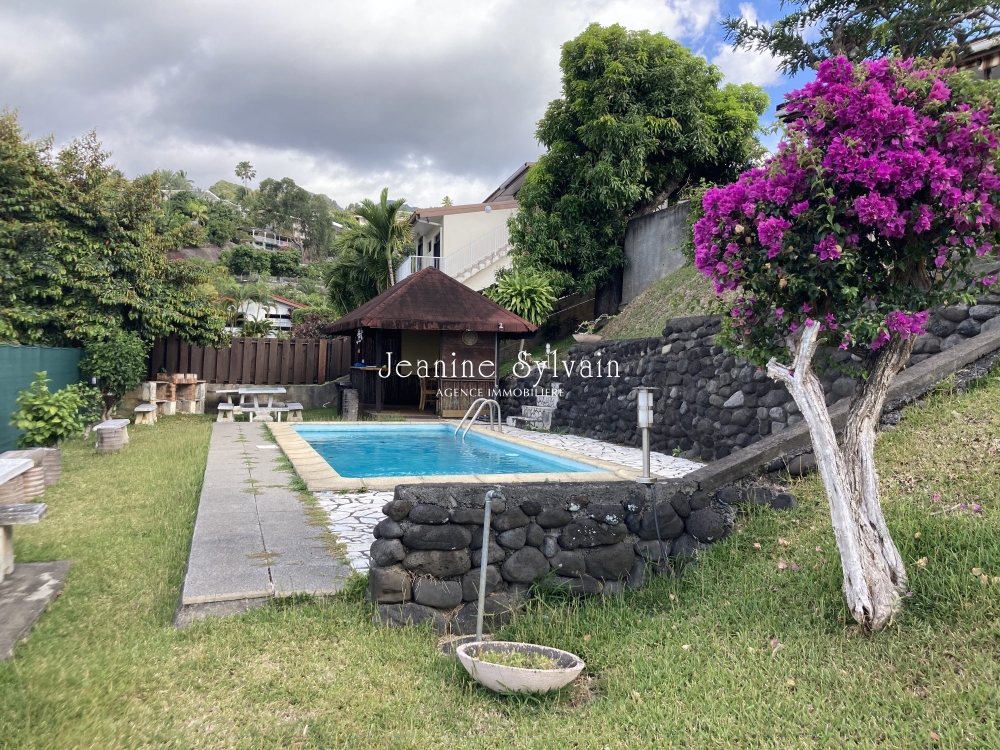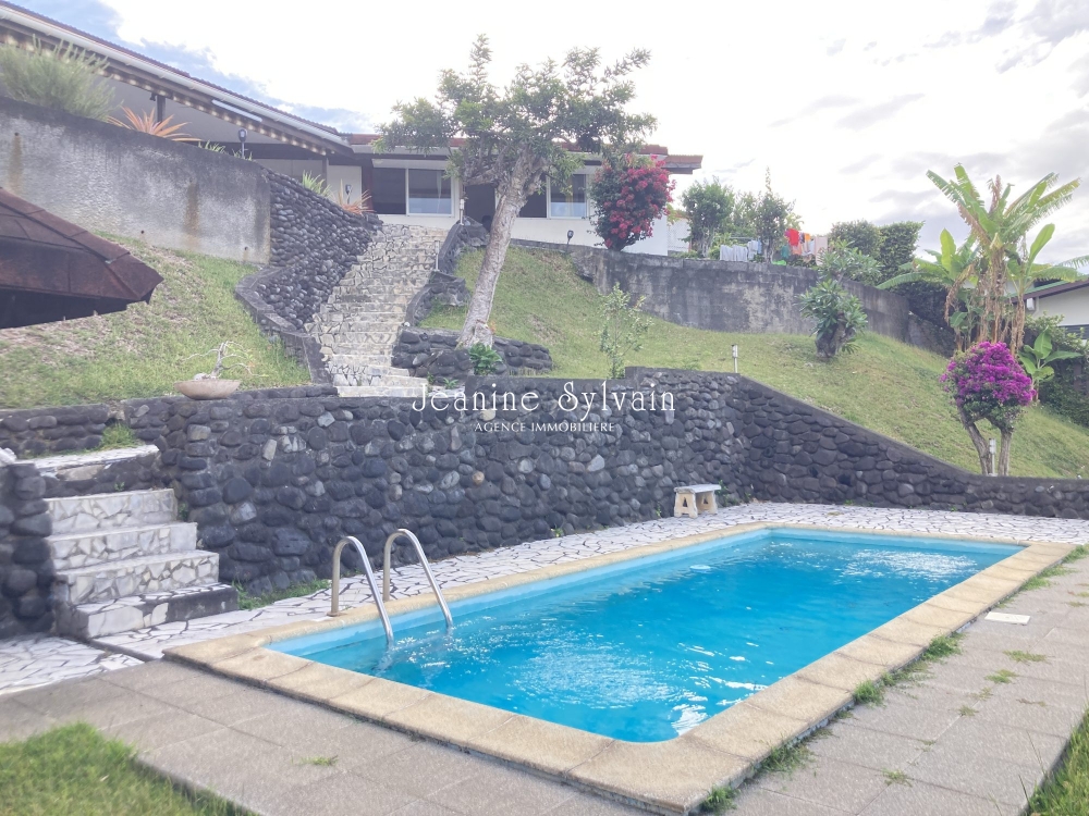 Terrain de 1200 m2 sur deux niveaux, maison d'habitation de environ 150 m2 habitables, structure béton, comprenant 4 chambres, 3 salles de bains, cuisine équipée, séjour, grande terrasse couverte de 45 m2, piscine carrelée, jardins clôturé avec portail automatique. Un bureau indépendant. Entretien jardin et piscine compris dans le loyer.