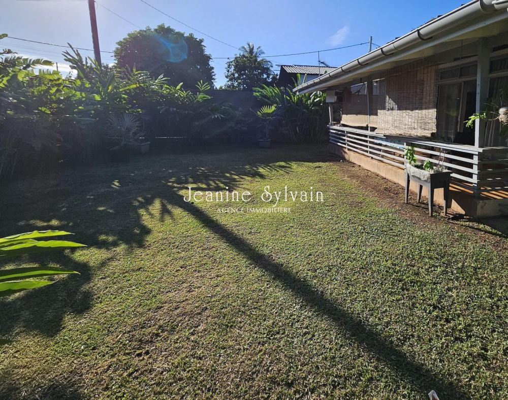 PUNAAUIA sur terrain de 859m2 une maison sur dalle en béton et ossature bois, F3 comprenant: séjour/cuisine, salle d'eau, 2 chambres, terrasse couverte. Prévoir budget de rafraîchissement ou rénovation selon les attentes. Possibilité de construire une deuxième habitation sur le surplus de terrain non bâti.