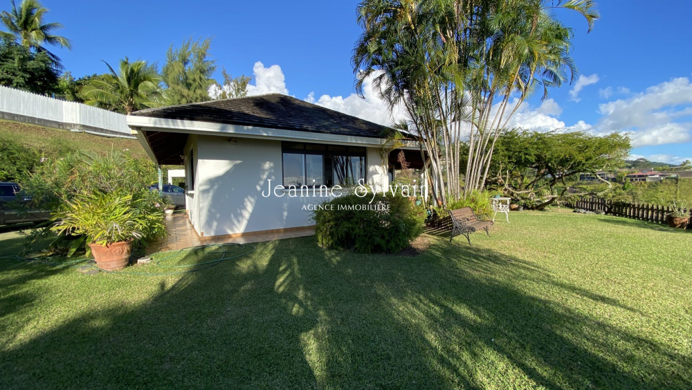 Très belle propriété sur les hauteurs de Punaauia dans une résidence prisée, sur un promontoire avec pas de vis à vis et très belle vue sur la passe de Taapuna, Moorea et la vallée. Maison des années 85 en dur très bien entretenue, avec belle hauteur sous plafond dans le séjour, toiture en bardeaux (doublée) cuisine équipée, 2 chambres avec salle d'eau chacune. En sous sol, une grande chambre avec salle d'eau, un cellier.
