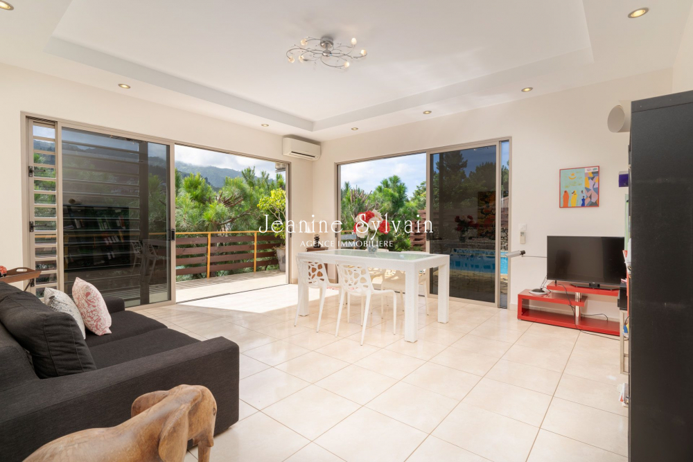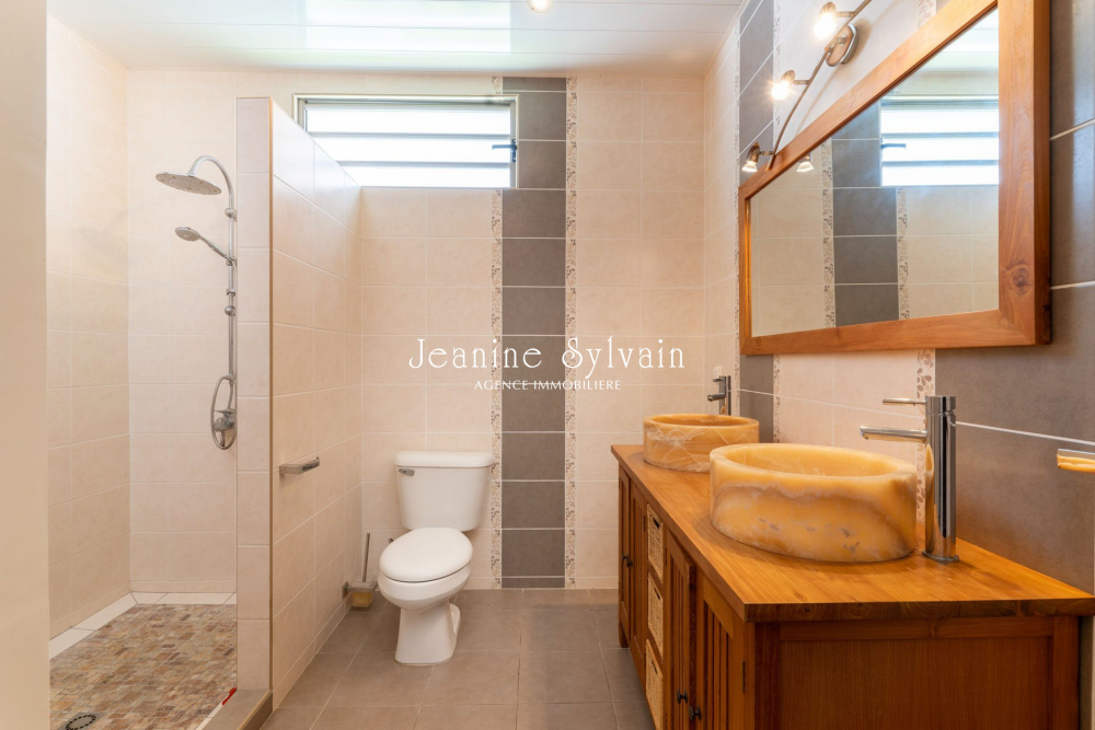 Sur les hauteurs de Miri très belle villa spacieuse sur deux niveaux, comprenant un vaste séjour cuisine américaine bien aménagée, chambre avec dressing et salle d'eau, terrasse et au rez de chaussée 1 salon, 3 chambres, 2 dressings et 2 salles d'eau. Piscine à débordement, terrasse couverte pour y installer une cuisine extérieure. Prête à habiter.