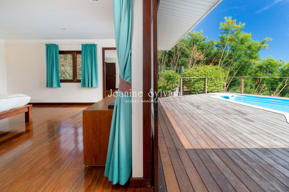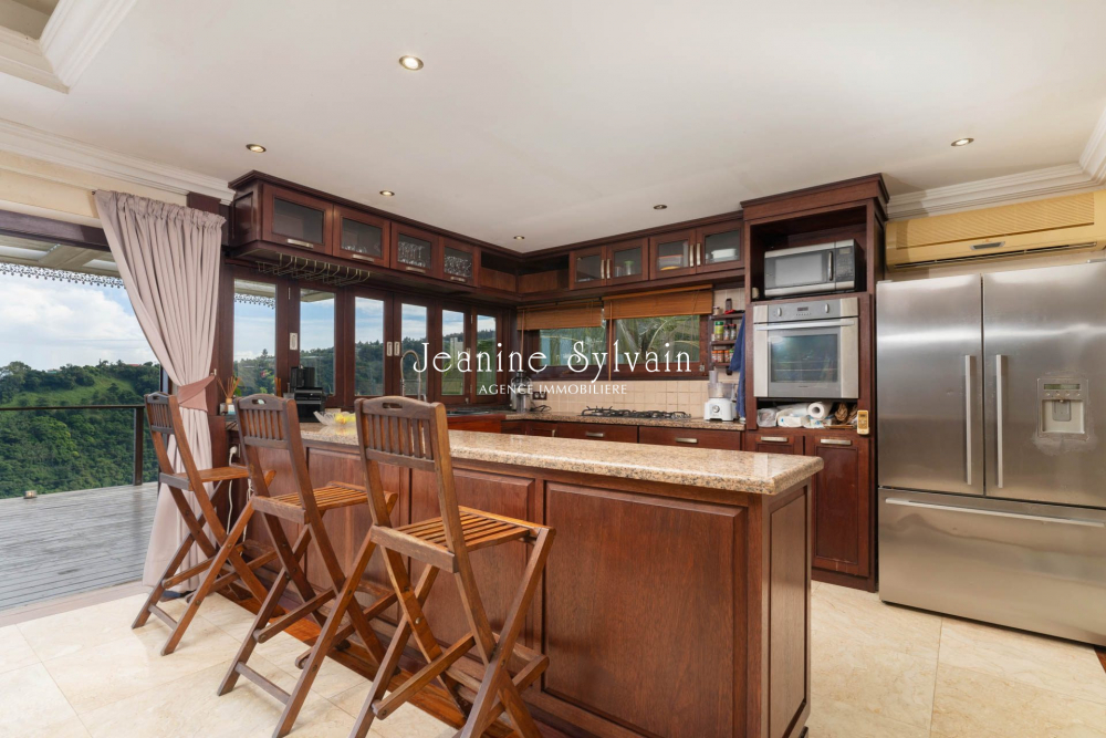 Sur les hauteurs de Punaauia, vue superbe sur Moorea sans aucun vis à vis, maison de qualité marbre et bois précieux, très bien construite en béton, d'une superficie de 200m2 habitable et terrasse en deck teck de 150m2, piscine, comprenant un séjour de 70m2, cuisine aménagée, 3 chambres dont une suite parentale de 30m2 avec salle d'eau et dressing, buanderie, WC indépendant, un bureau et atelier. Garage couvert.