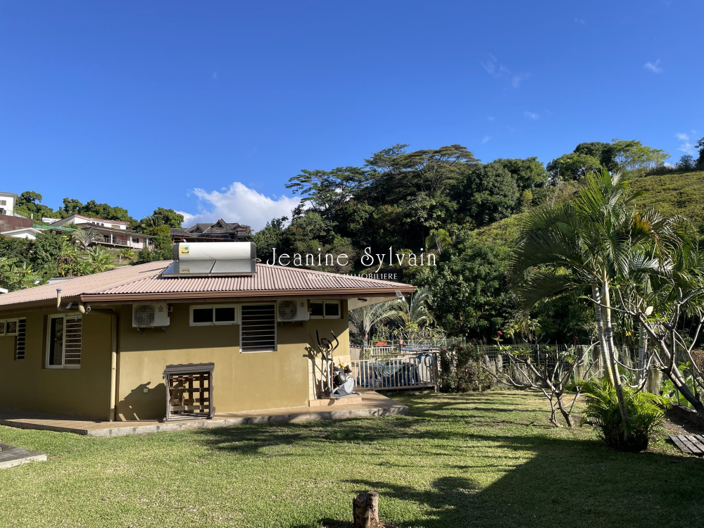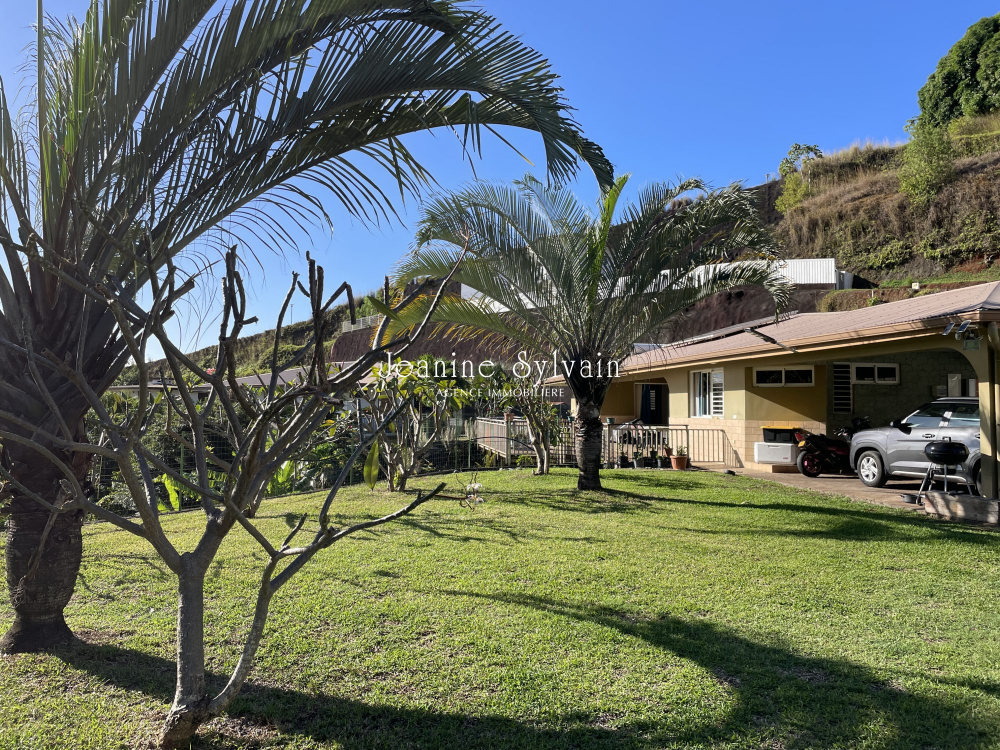 Sur les hauteurs d'Arue, dans lotissement prisé, calme, très bien situé proche des commodités, beaucoup de verdure, maison familiale sur un grand terrain plat de 1300 m², vue mer.