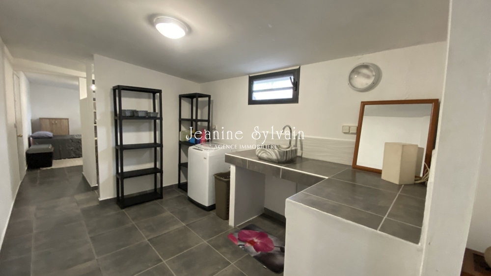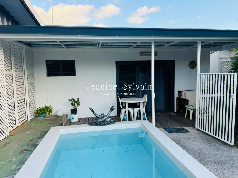 Début Paea, petite maison mitoyenne bien aménagée moderne comprenant un séjour climatisé, cuisine équipée, une chambre, une salle d'eau et une pièce chambre ou bureau, buanderie. Accès à la piscine, commune aux deux logements.