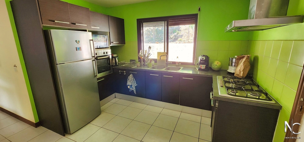 Cette même entrée donne accès à la pièce de vie principale composée du séjour de 30m² lui aussi climatisé et à la cuisine US aménagée et équipée. Cet espace s'ouvre sur le coin nuit 'enfants' composé de 2 chambres climatisées avec placard mural, de la salle d'eau et les WC séparés.