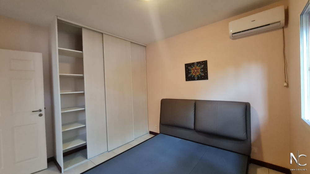 Une terrasse couverte carrelée prolonge le séjour. Volets roulants électriques. Copropriété horizontale sans charges.