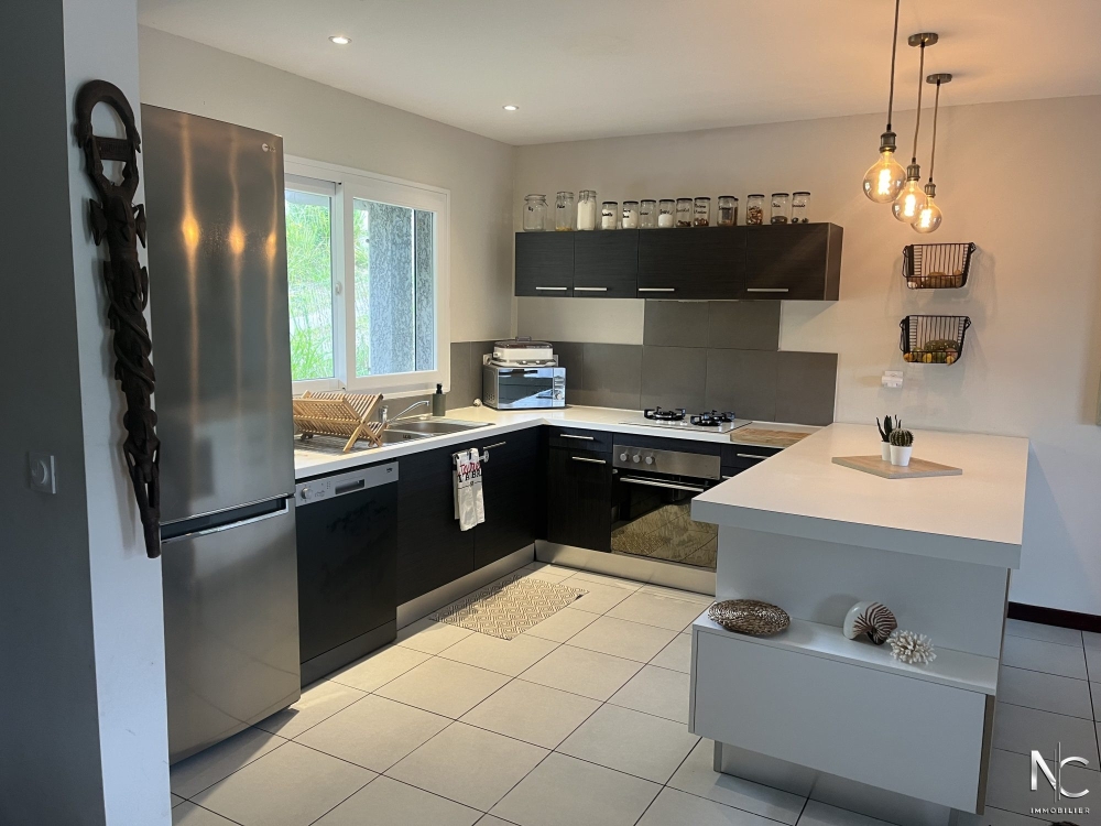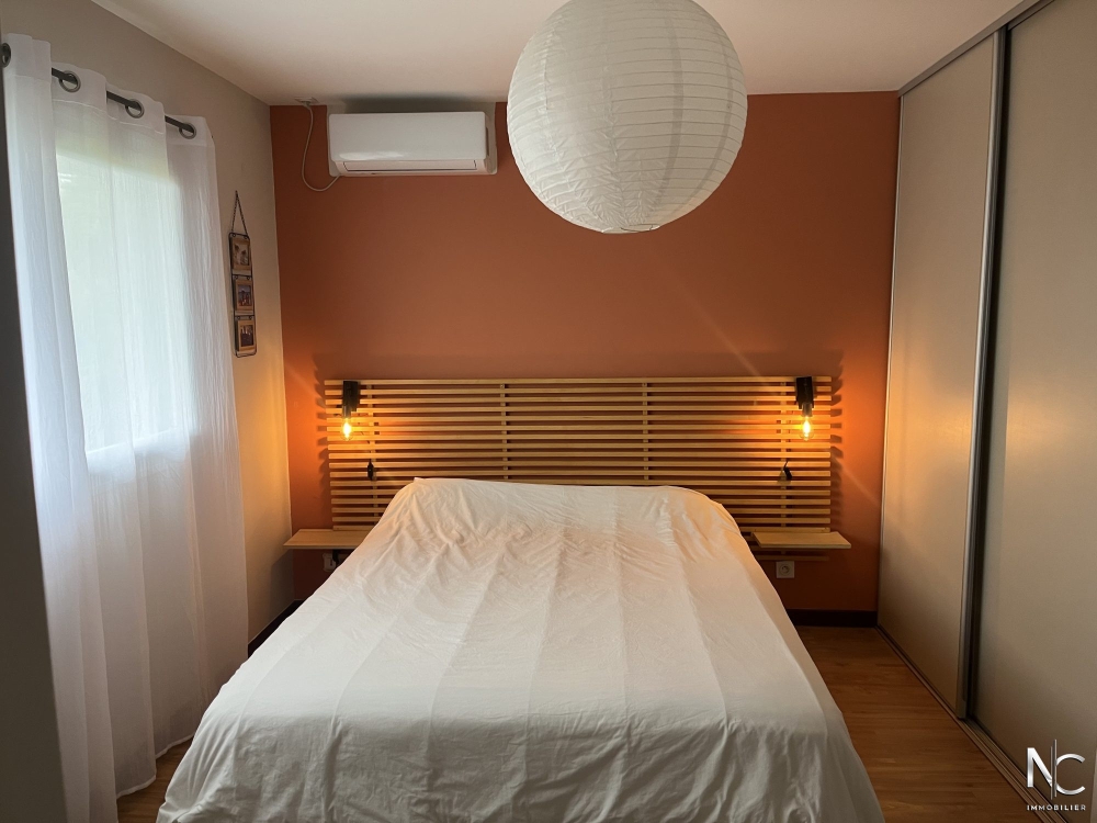 Charmante villa traditionnelle F4 sur 6 ares de terrain piscinable. Le séjour donne sur une cuisine équipée pour une surface totale de 45 m², le dégagement dessert 3 chambres dont une suite parentale avec une salle d'eau + wc privatifs, une 2ème salle d'eau, un 2ème wc et une buanderie.