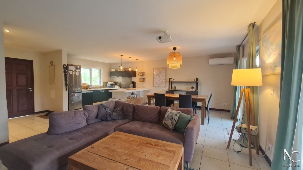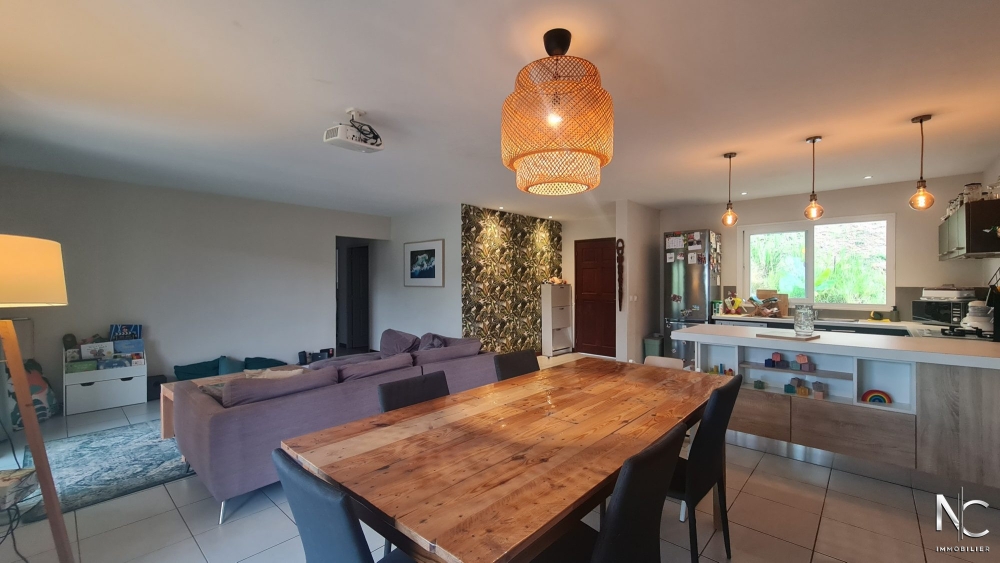 Charmante villa traditionnelle F4 sur 6 ares de terrain piscinable. Le séjour donne sur une cuisine équipée pour une surface totale de 45 m², le dégagement dessert 3 chambres dont une suite parentale avec une salle d'eau + wc privatifs, une 2ème salle d'eau, un 2ème wc et une buanderie.